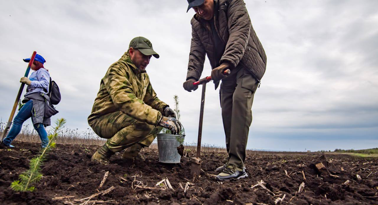 Саженцы ели и сосны из Ленинградской области теперь будут расти у подножия Саур-Могилы.