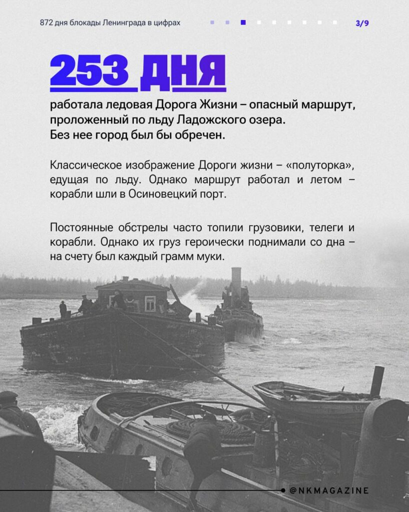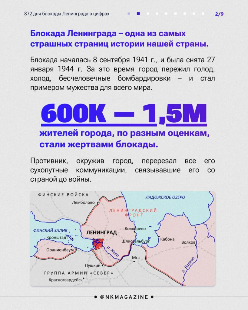 В Ленинграде в годы блокады рожали детей, чинили водопровод и сдавали кровь. Обычная, казалось бы, жизнь. Но в тех условиях любое привычное дело давалось огромной ценой. В специальном материале Нулевого Километра ко Дню снятия блокады вспоминаем, из каких деталей сложился огромный подвиг всех ленинградцев. Сколько сил Вермахт стянул к Ленинграду, чем кормили родившихся в блокаду детей и почему Дорога Жизни – это не только лед, но и вода? Ответы – в наших карточках!