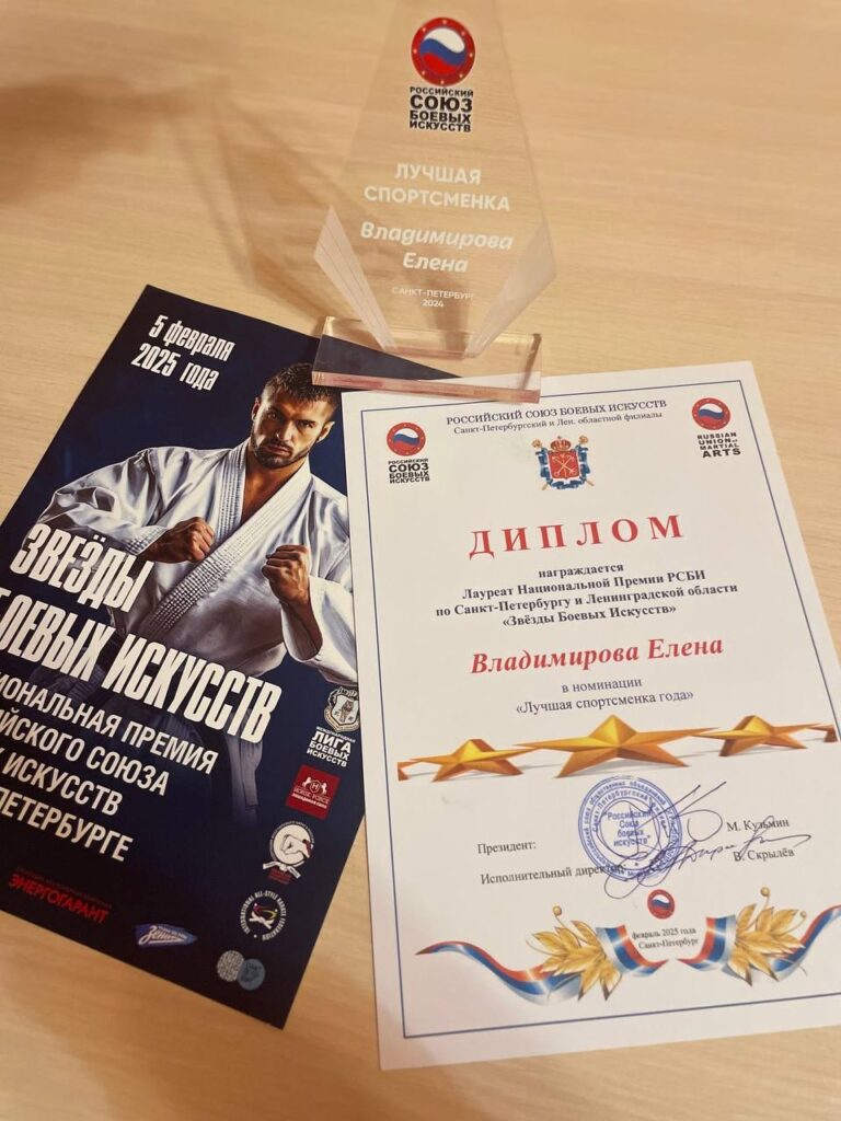 5 февраля 2025 г. в Олимпийском зале Комитета по физической культуре и спорту Санкт-Петербурга, состоялось вручение национальной премии Российского союза боевых искусств (РСБИ), «Звезда боевых искусств» за 2024г., где председателем Комитета по Физической культуре и спорту Шантырь Антоном Игоревичем и Президентом СПБ и ЛО РСБИ Кузьминым Михаилом Ивановичем были награждены лучшие спортсмены и тренеры.