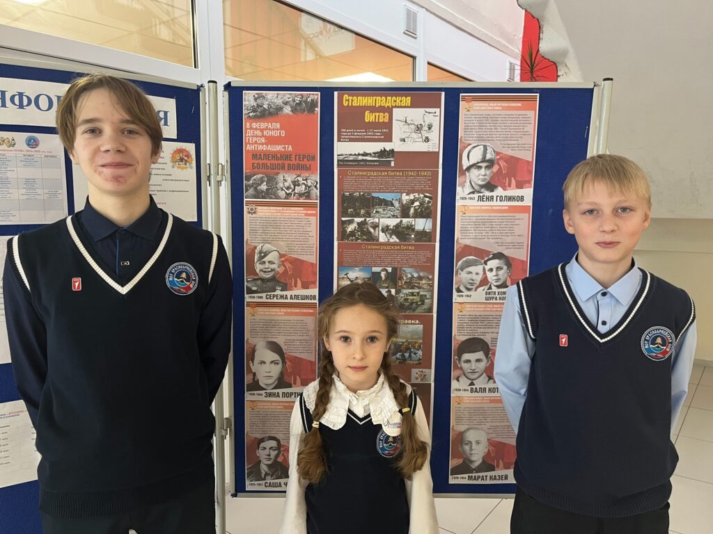 8 февраля отмечается Международный день юного героя-антифашиста. Дата была установлена в 1964 году в память о детях и подростках, принявших участие в борьбе с немецко-фашистскими захватчиками во время Второй мировой войны.Активисты «Движения Первых» и «Орлята России» школы подготовили памятный стенд с фотографиями юных героев Великой Отечественной войны: Зины Портновой, Лёни Голикова и других. Ребята рассказали о подвиге детей и подростков и об их вкладе в Победу.