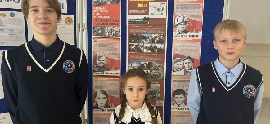 8 февраля отмечается Международный день юного героя-антифашиста. Дата была установлена в 1964 году в память о детях и подростках, принявших участие в борьбе с немецко-фашистскими захватчиками во время Второй мировой войны.Активисты «Движения Первых» и «Орлята России» школы подготовили памятный стенд с фотографиями юных героев Великой Отечественной войны: Зины Портновой, Лёни Голикова и других. Ребята рассказали о подвиге детей и подростков и об их вкладе в Победу.