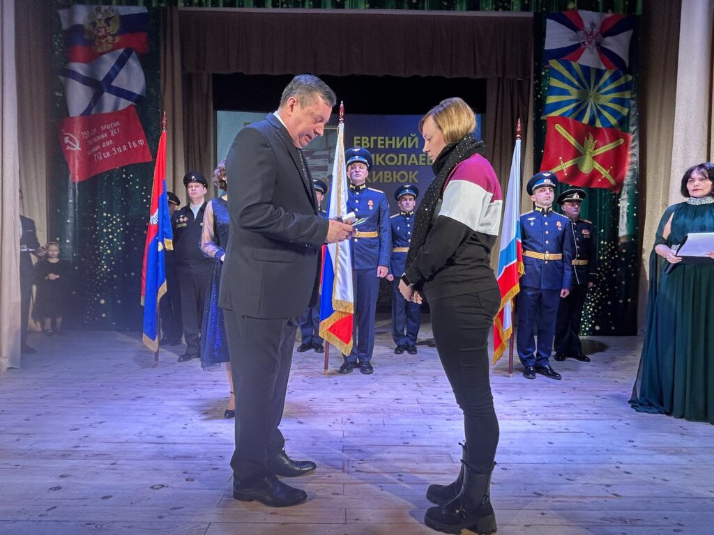 В районном киноконцертном зале на праздничном мероприятии, посвященном Дню защитника Отечества вручили Ордена «Мужества» семьям наших земляков, отстаивавших национальные интересы — будущее нашей Великой страны, останавливая возрождение нацизма и героически погибших в ходе специальной военной операции и награжденных посмертно за честь, доблесть и мужество, проявленные на СВО.