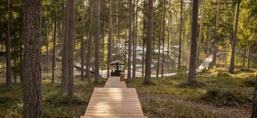 Вы можете начать его от смотровой площадки «Гнездо» (60.465651, 30.437734, фото 2-4 для ориентира) — там, где открывается вид на озера и небо. Место, в котором легко замолчать и почувствовать, куда хочется идти.