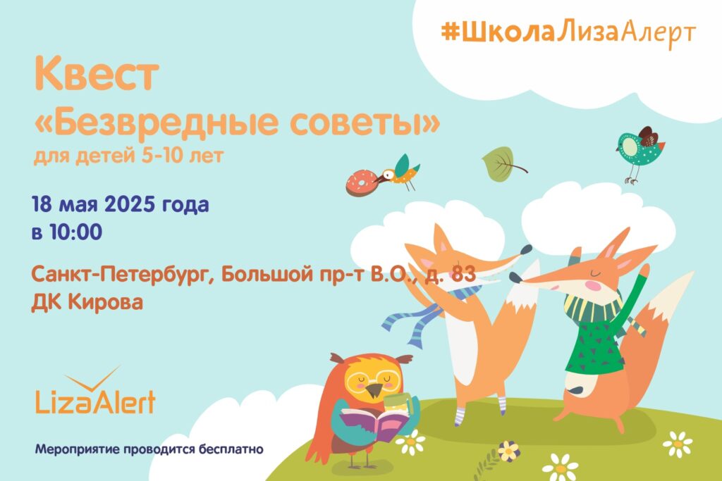 Школа «ЛизаАлерт» приглашает детей от 5 до 10 лет на квест «Безвредные советы».