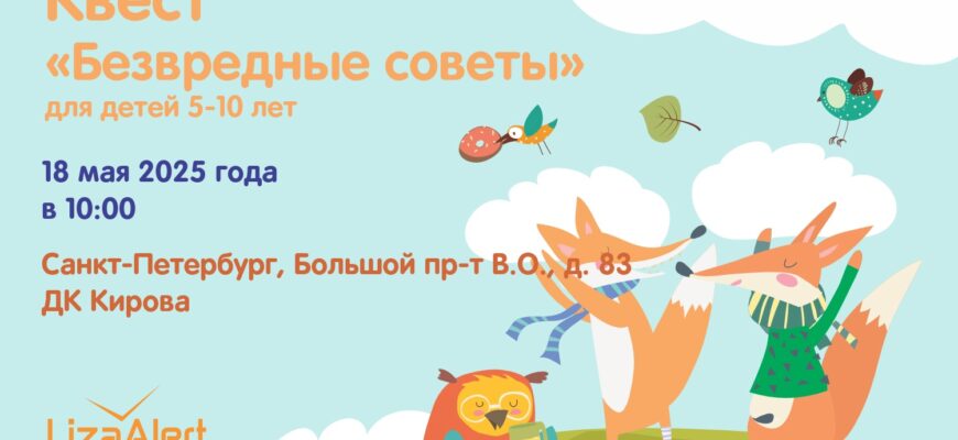 Школа «ЛизаАлерт» приглашает детей от 5 до 10 лет на квест «Безвредные советы».