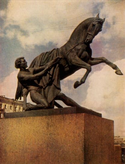 Европейскую известность Клодту принёс ансамбль «Укротители коней» для Аничкова моста. Когда первая скульптурная группа была вылеплена в натуральную величину и подготовлена к переводу в бронзу, скончался учитель и сотрудник Клодта – литейщик Екимов. Петру Карловичу самому пришлось заняться отливкой своего произведения, и с 1838 года он возглавил литейную мастерскую Академии художеств. В ноябре 1841 года на западных устоях Аничкова моста появились две бронзовые скульптурные группы, выполненные Клодтом. На восточных устоях поместили их гипсовые копии, выкрашенные под бронзу. Однако вскоре, по приказу Николая I, скульптуры отправили в подарок прусскому королю, а ещё через четыре года вновь отлитых коней подарили королю Сицилии. Об этом сообщает энциклопедический словарь Ф. А. Брокгауза и И. А. Ефрона (1890–1907). Копии «Укротителей коней» были установлены в Петергофе, Стрельне, на Конном дворе усадьбы Кузьминки под Москвой. Клодт решил больше не делать копий, и в 1850 году на Аничковом мосту были установлены бронзовые статуи, отлитые уже по новым моделям. В результате образовалась композиция из четырёх различных скульптурных групп, представлявших развёрнутую драматическую серию, в которой последовательно развивался сюжет покорения коня человеком. В основе замысла мастера лежала тема победы человека над стихийным могуществом природы, образ мятежной силы, укрощаемой разумом.