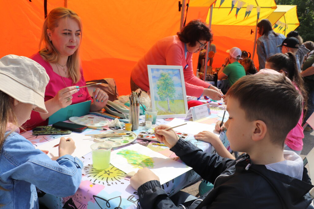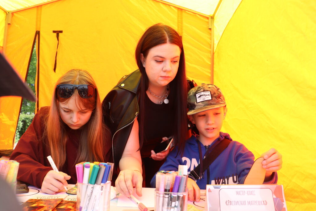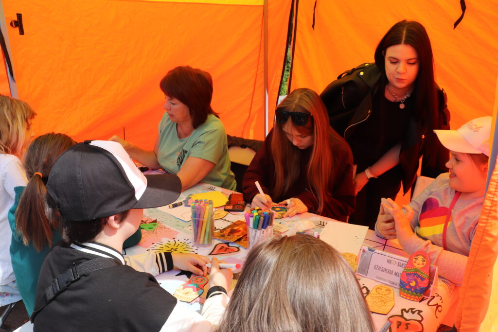 На площади работали аттракционы, в пёстрых палатках проводились мастер-классы.