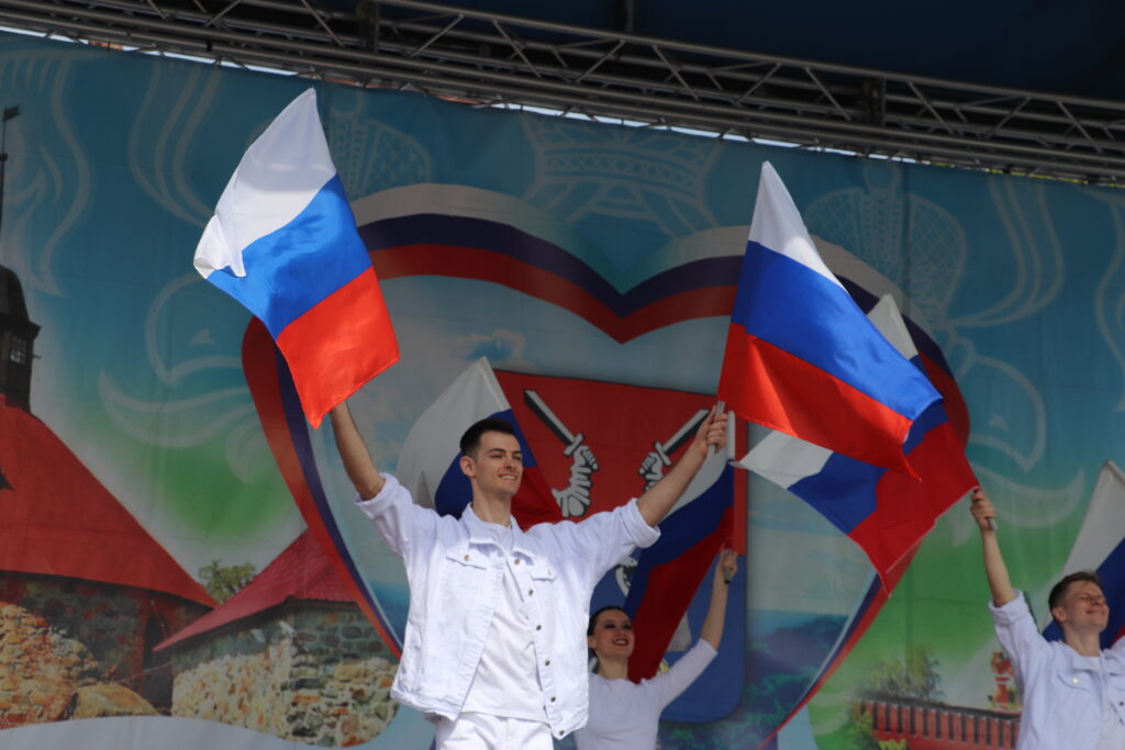 В Приозерске на центральной площади торжество началось с исполнения гимна Российской Федерации и поднятия государственного флага.