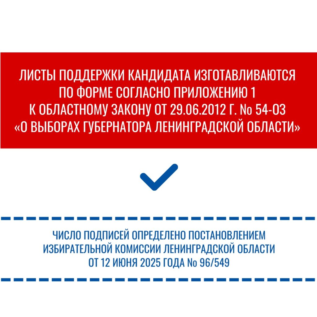 Избирательной комиссией Ленинградской области 12 июня было принято постановление № 96/549 о числе лиц, подписи которых необходимо собрать для поддержки выдвижения кандидата на должность Губернатора Ленинградской области на выборах.