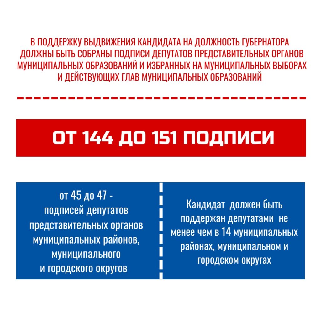 В соответствии с этим постановлением число подписей депутатов представительных органов муниципальных образований Ленинградской области и избранных на муниципальных выборах и действующих глав муниципальных образований, необходимое для поддержки выдвижения кандидата на должность Губернатора Ленинградской области, составляет от 144 до 151 подписи.