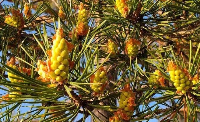 На Коневце сосны изобилуют пыльцой. В настоящее время ведётся её активный сбор. Необходимо постараться собрать достаточное количество сырья, ведь скоро пыльца отойдёт.