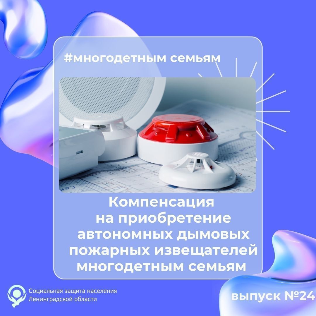 В Ленинградской области многодетным семьям предусмотрена компенсация расходов на самостоятельное приобретение автономных дымовых пожарных извещателей и источников автономного питания