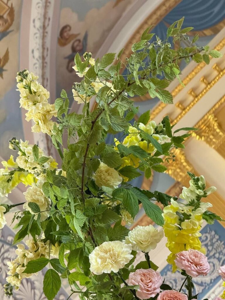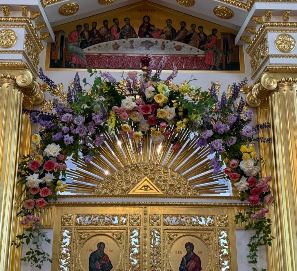 Эти уникальные украшения не только подчеркнули торжественность этого важного праздника, но и придали храму особую атмосферу, наполнив его ароматом свежих цветов.