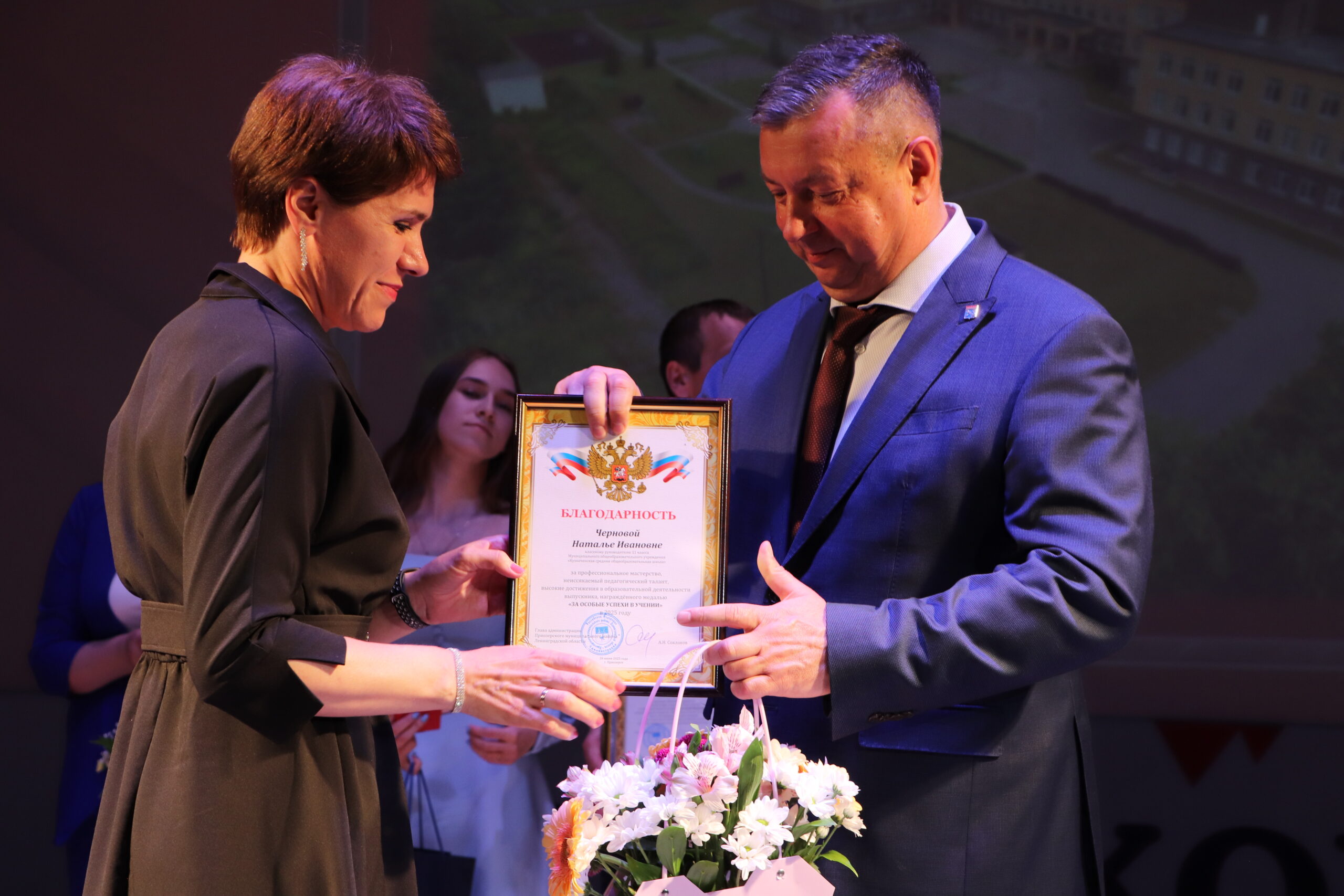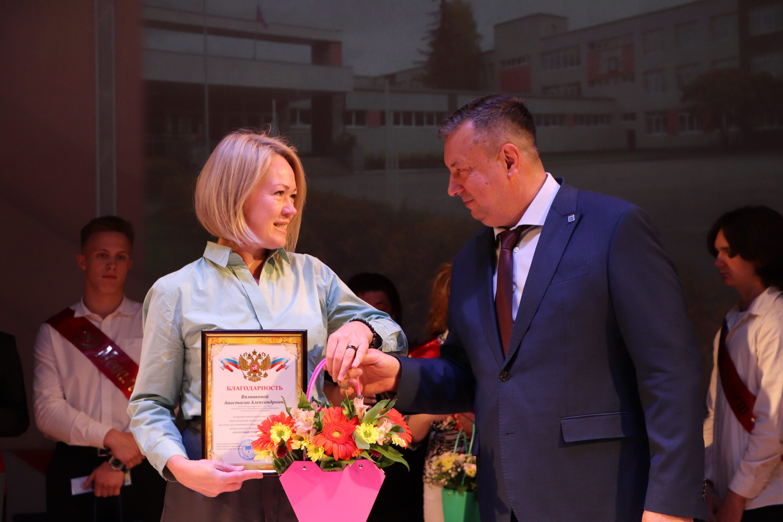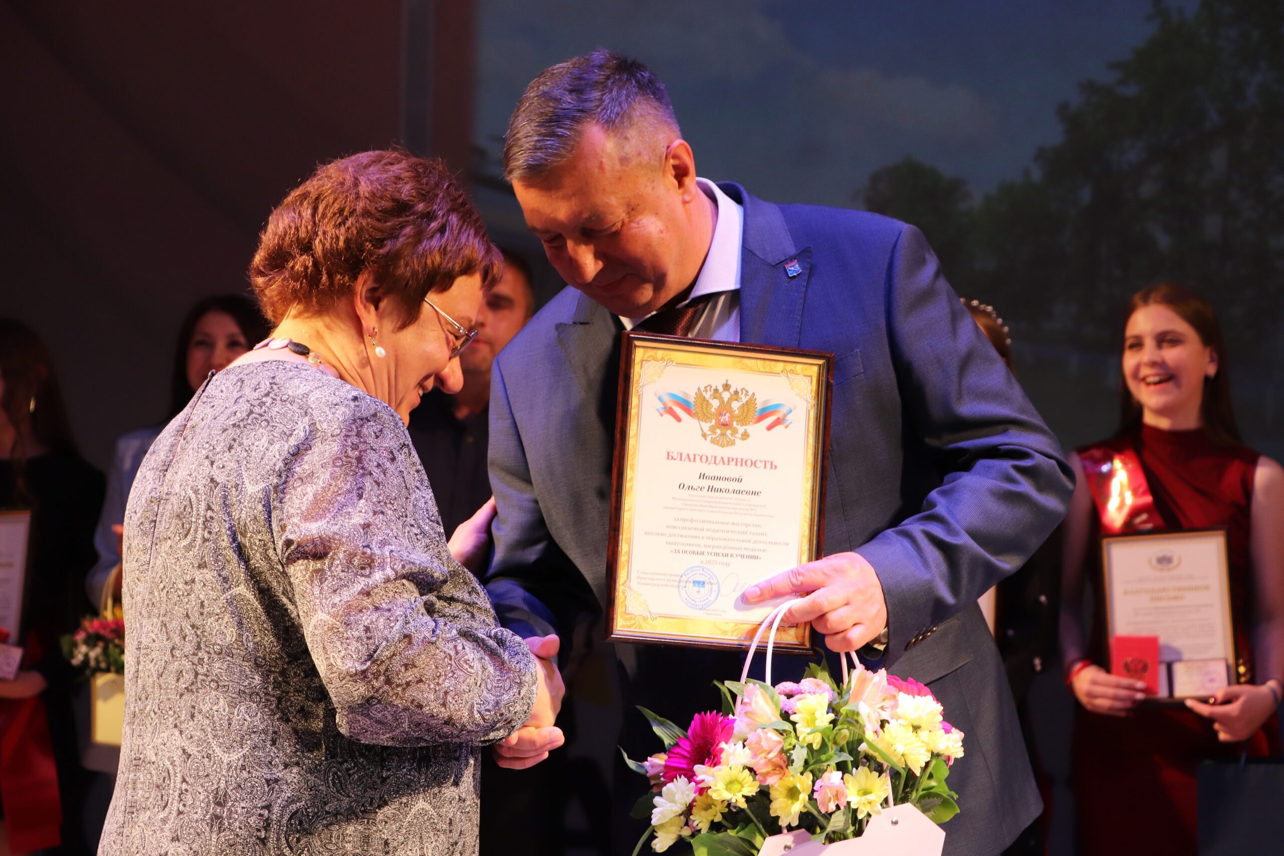 Глава администрации Приозерского района, Александр Соклаков , поздравил всех присутствующих с этим значимым событием. Особое внимание он уделил Веронике Мокеевой, получившей максимальные 100 баллов по обществознанию, и Полине Фокиной, продемонстрировавшей блестящие знания английского языка.