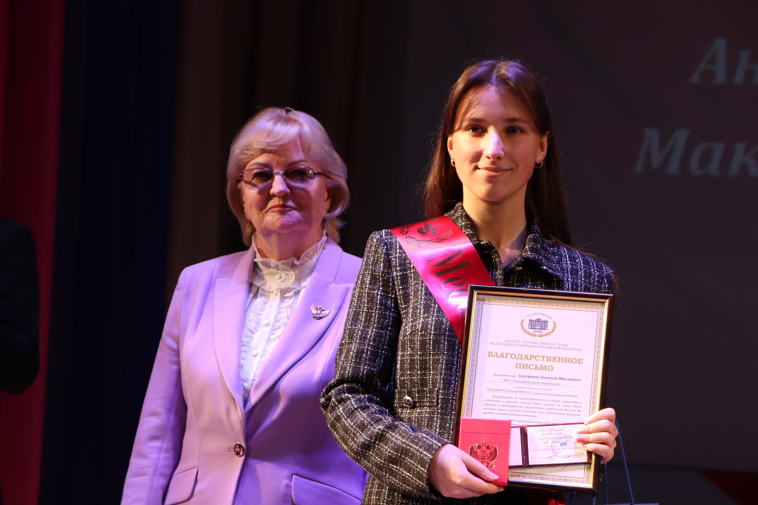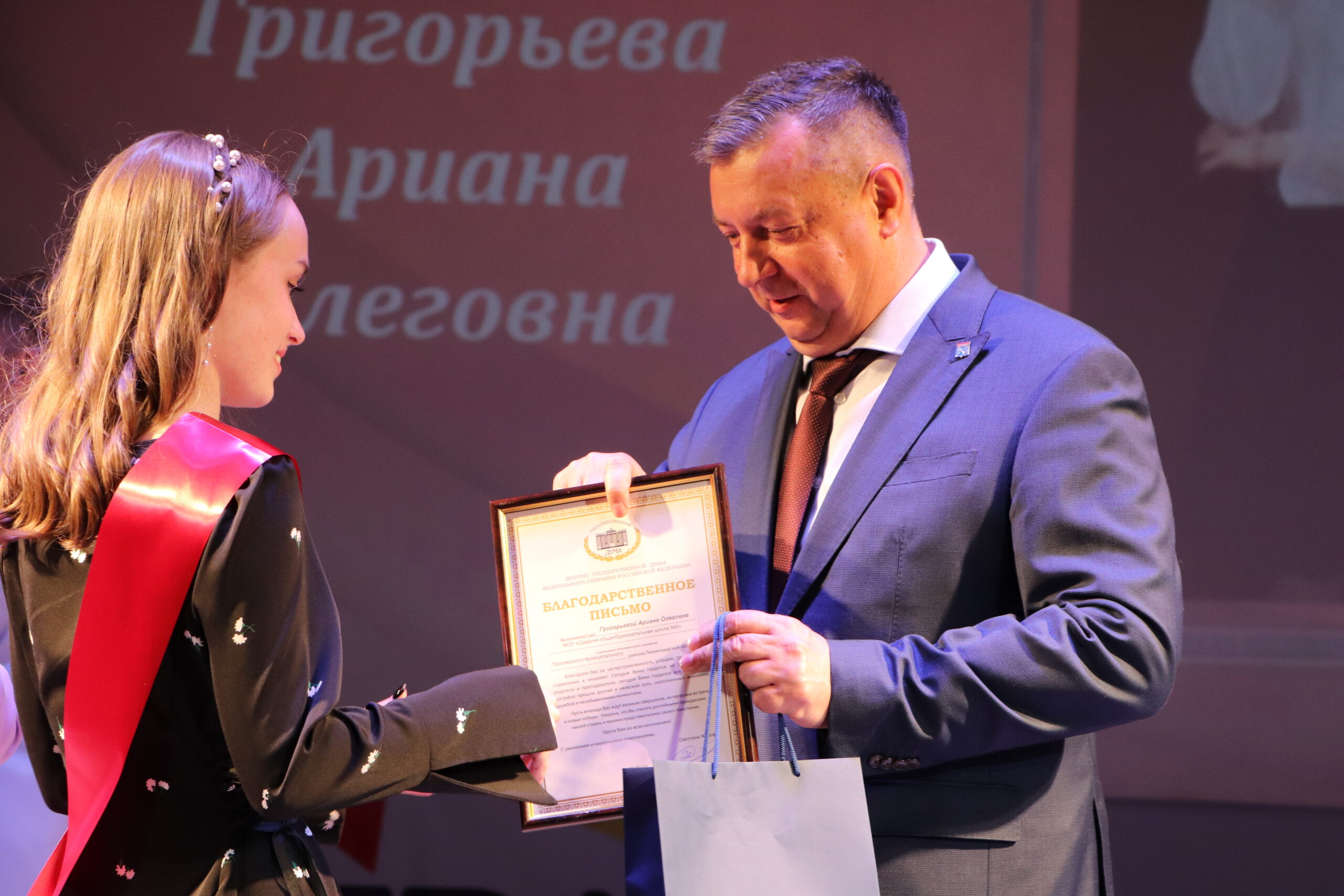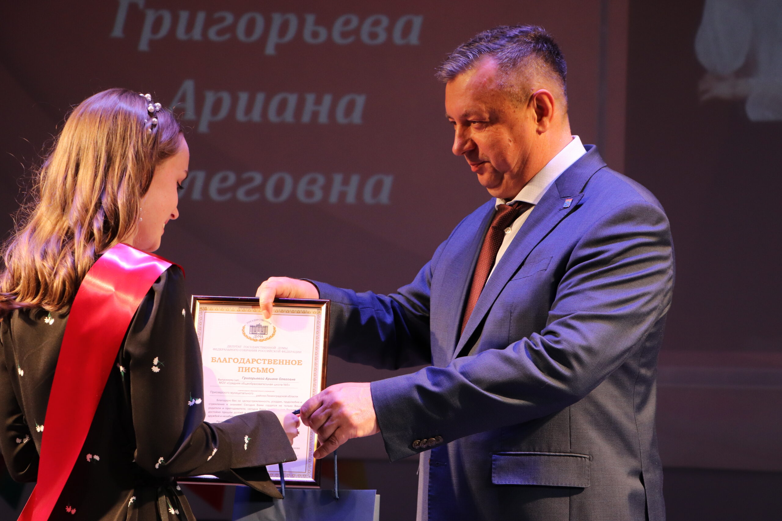 Глава администрации Приозерского района, Александр Соклаков , поздравил всех присутствующих с этим значимым событием. Особое внимание он уделил Веронике Мокеевой, получившей максимальные 100 баллов по обществознанию, и Полине Фокиной, продемонстрировавшей блестящие знания английского языка.