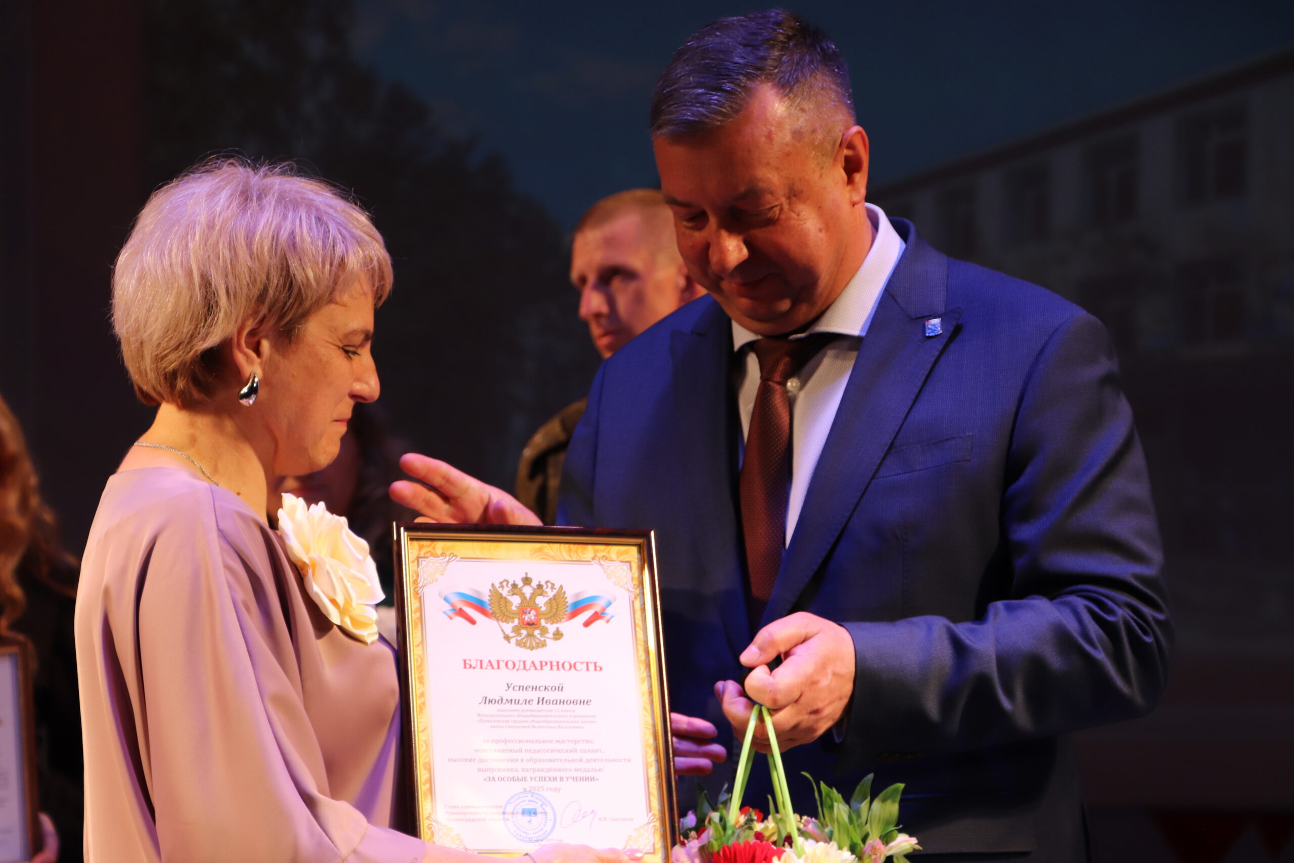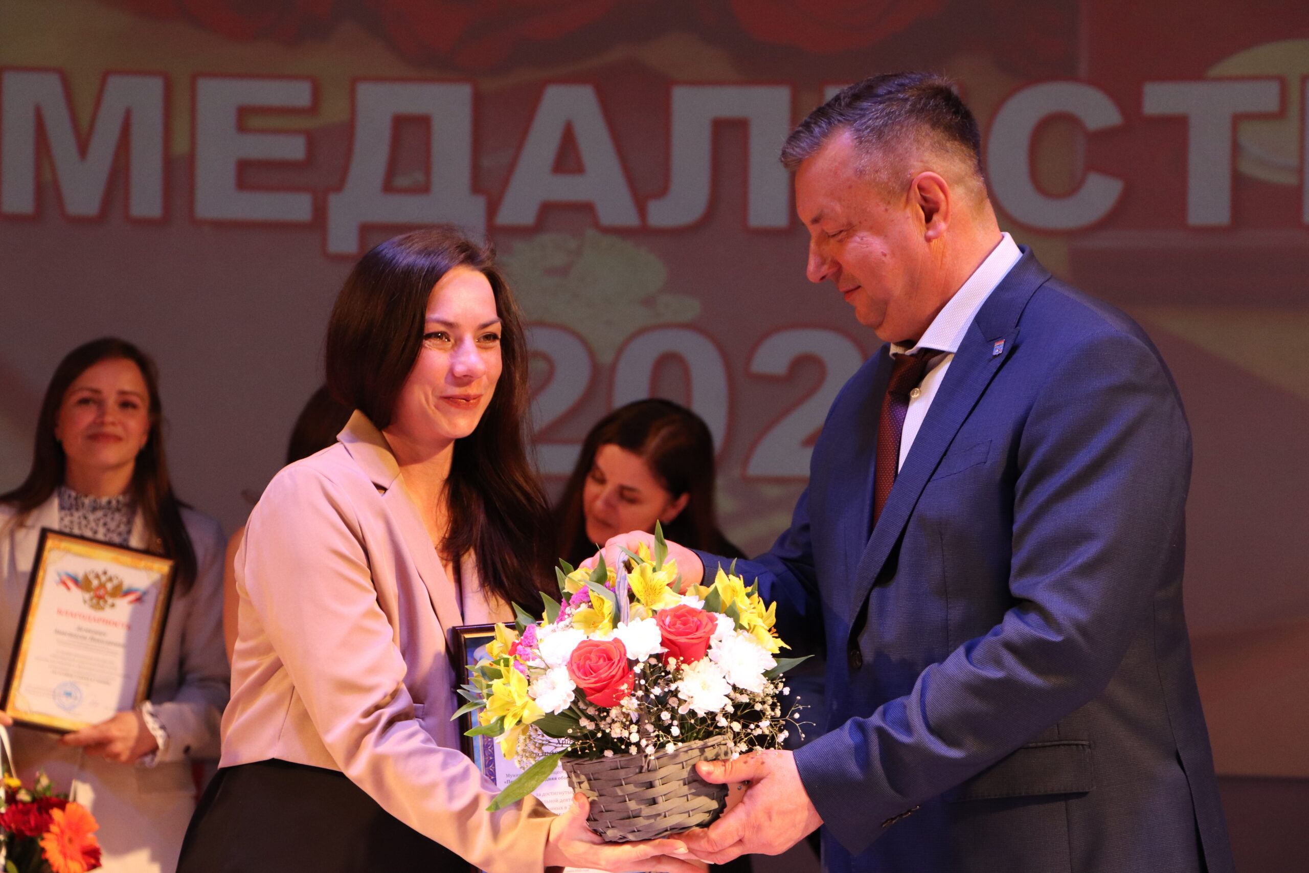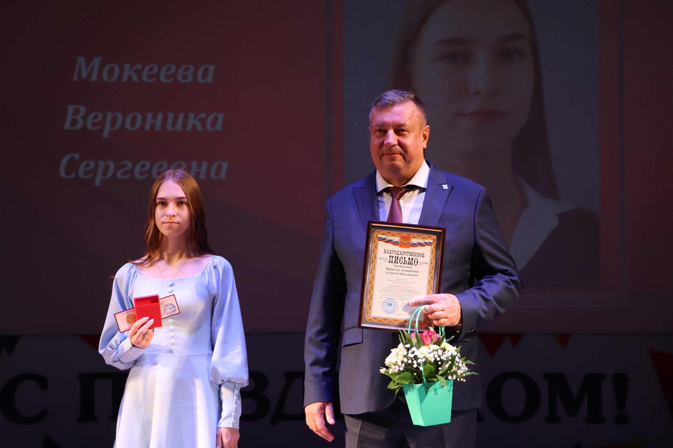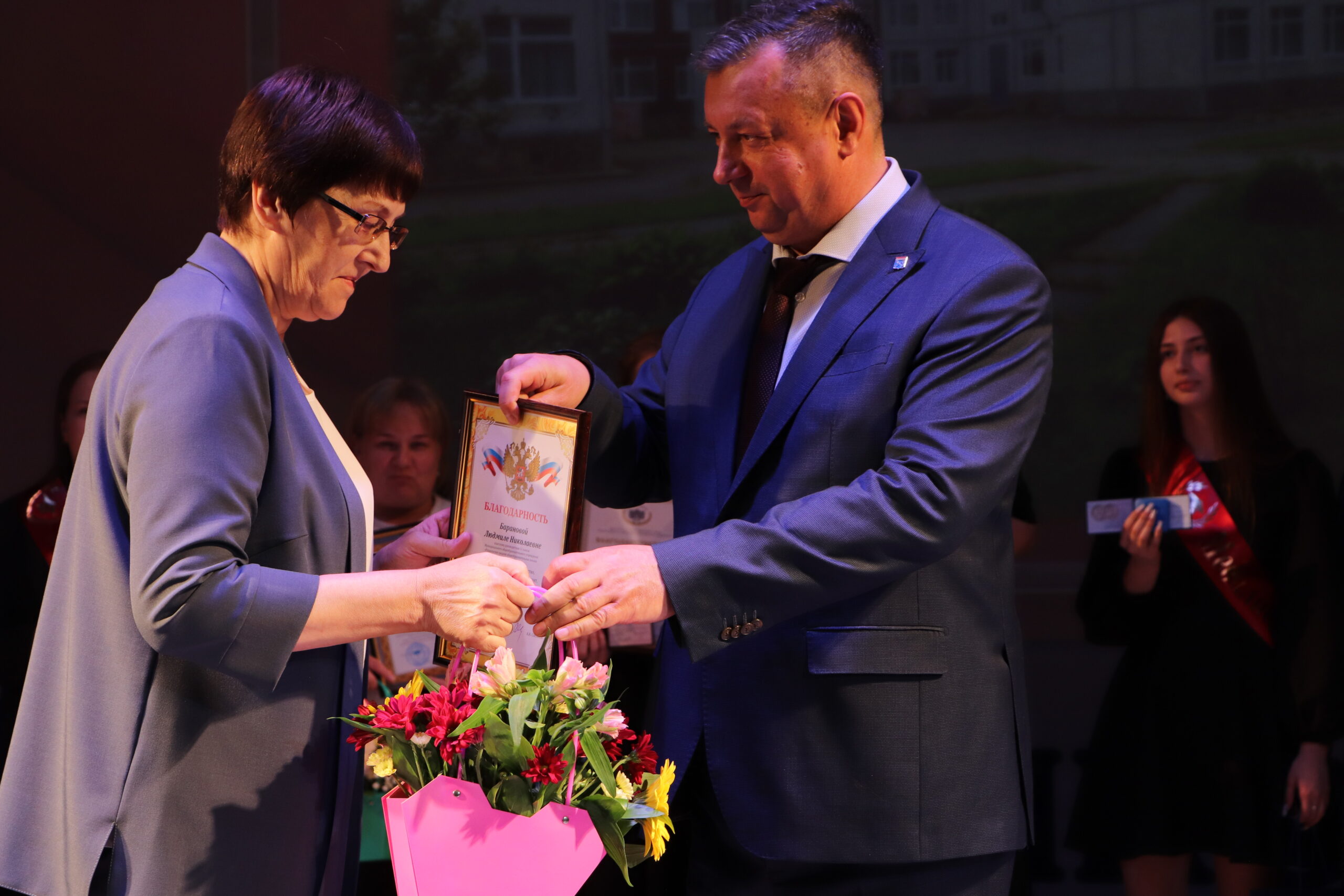 Александр Николаевич совместно с Ириной Кравченко, возглавляющей комитет образования районной администрации, вручили заслуженные награды медалистам, а также благодарственные письма их родителям, педагогам и директорам школ.