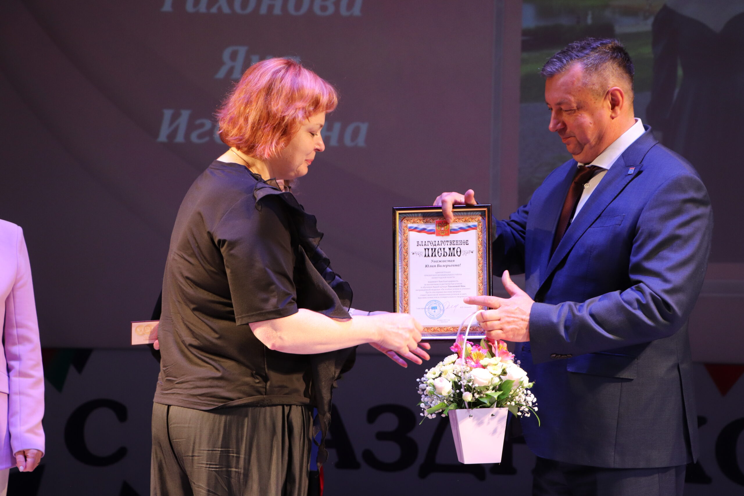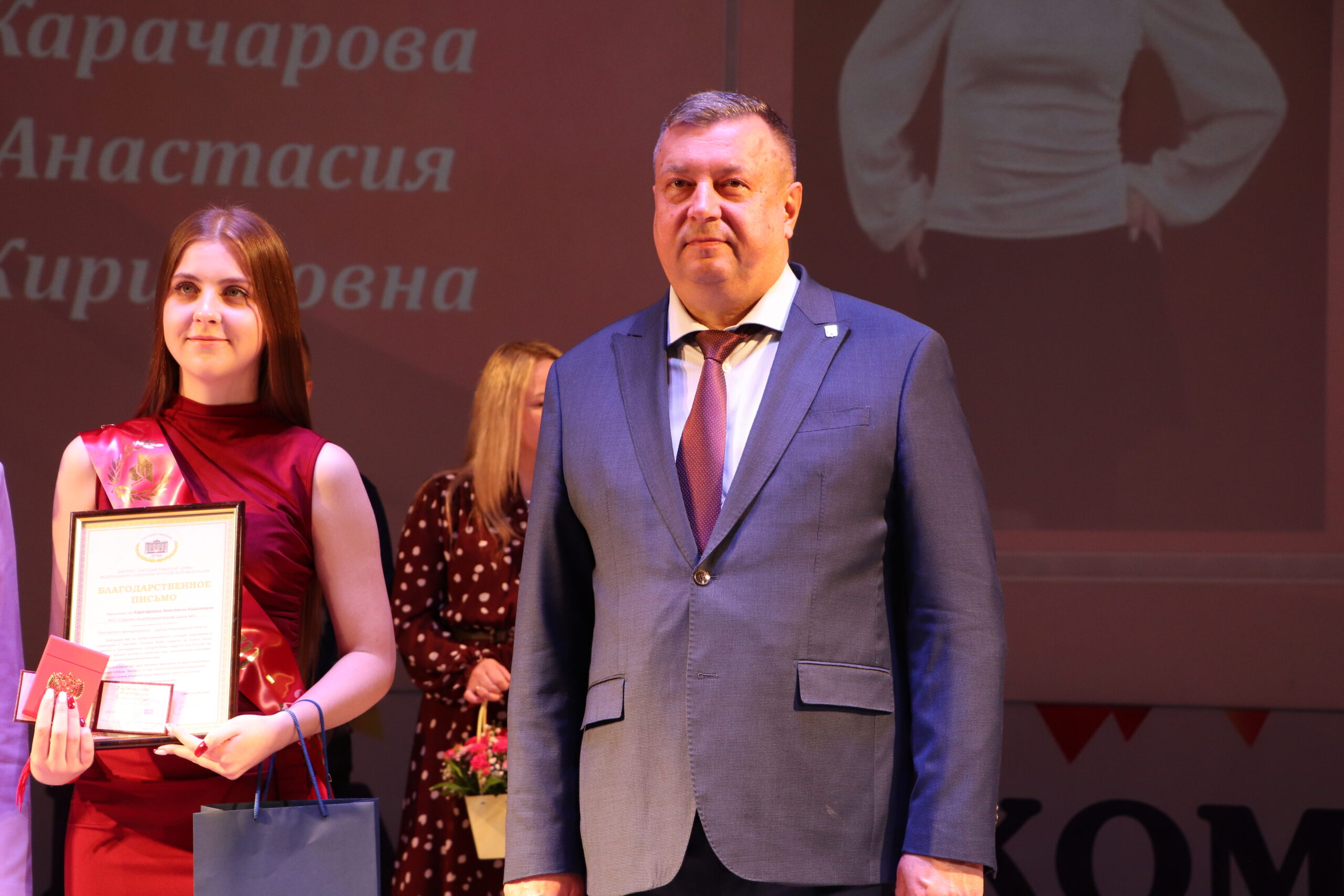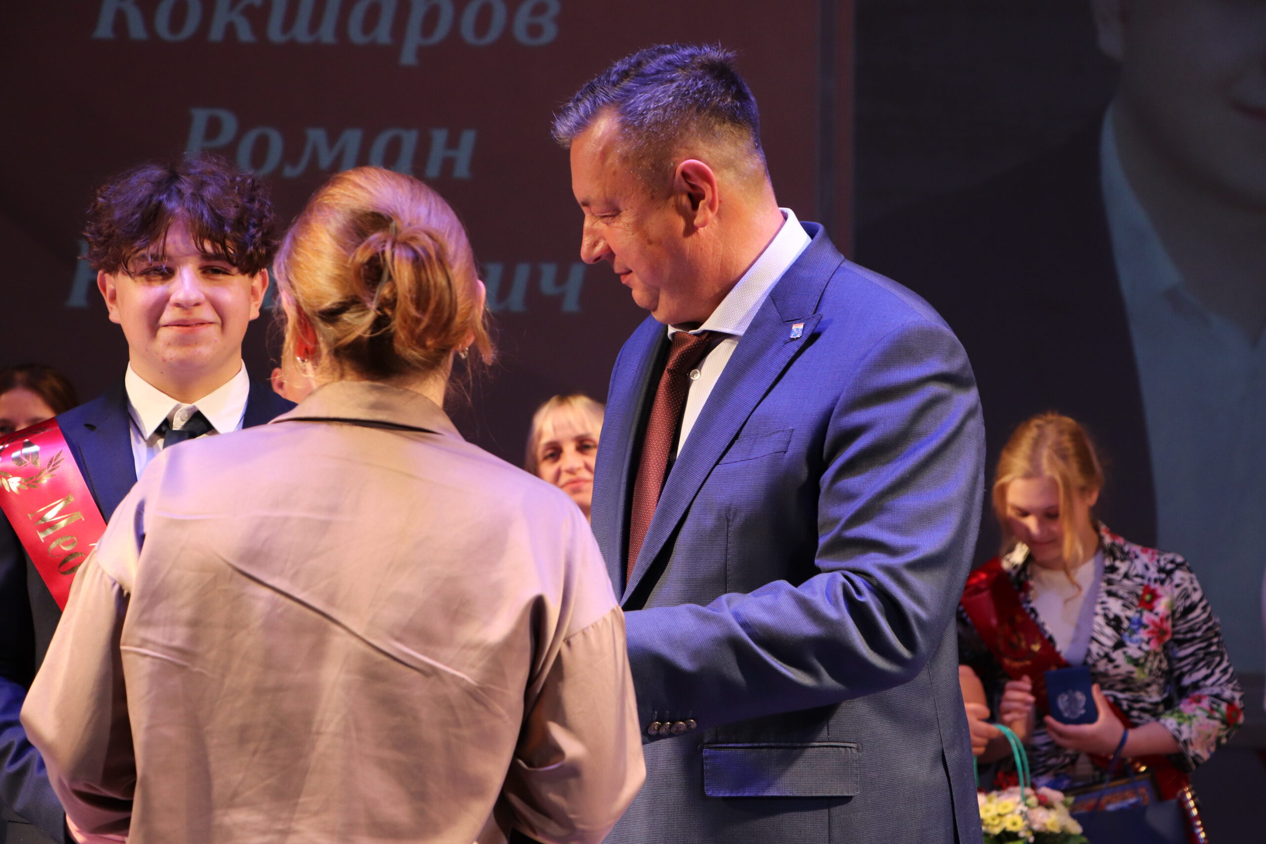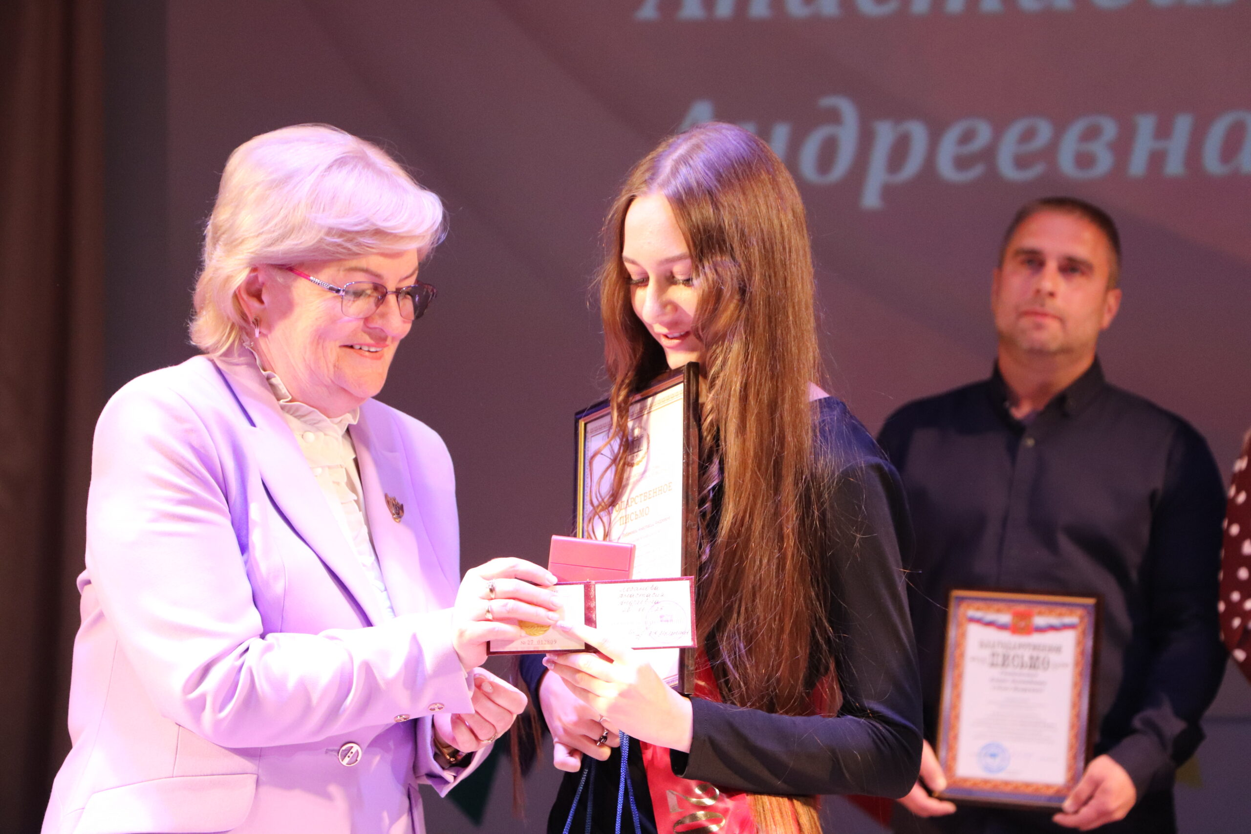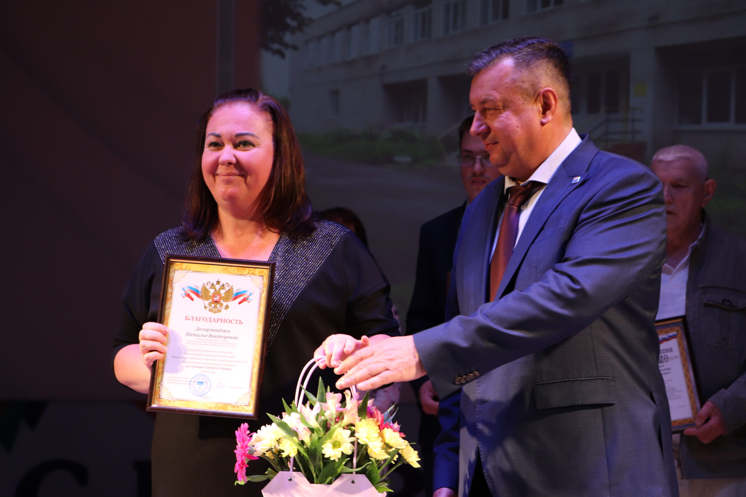 Александр Николаевич совместно с Ириной Кравченко, возглавляющей комитет образования районной администрации, вручили заслуженные награды медалистам, а также благодарственные письма их родителям, педагогам и директорам школ.