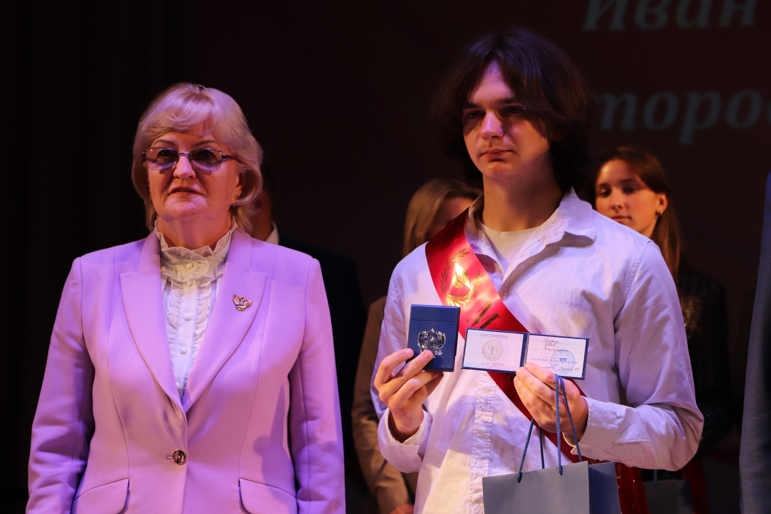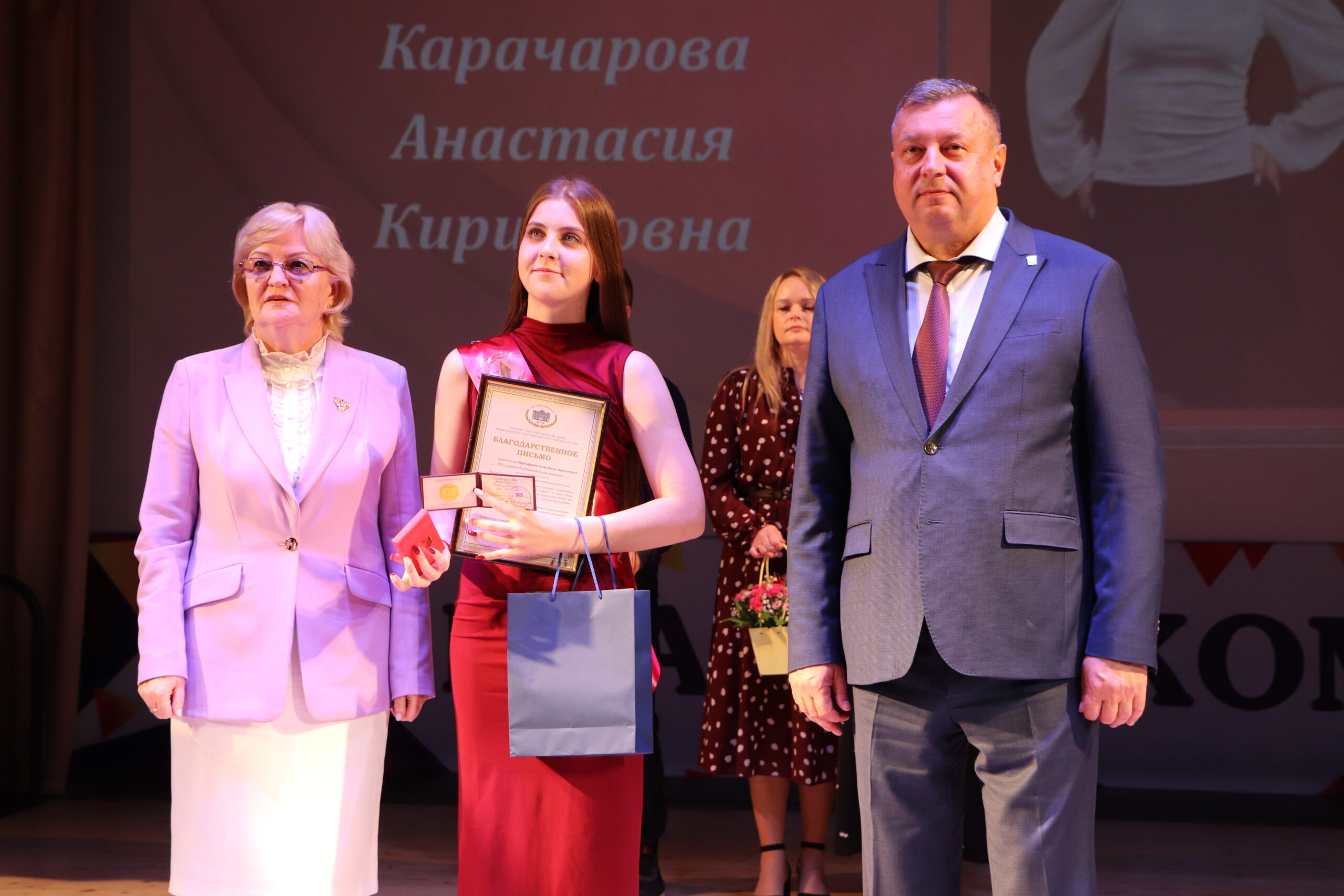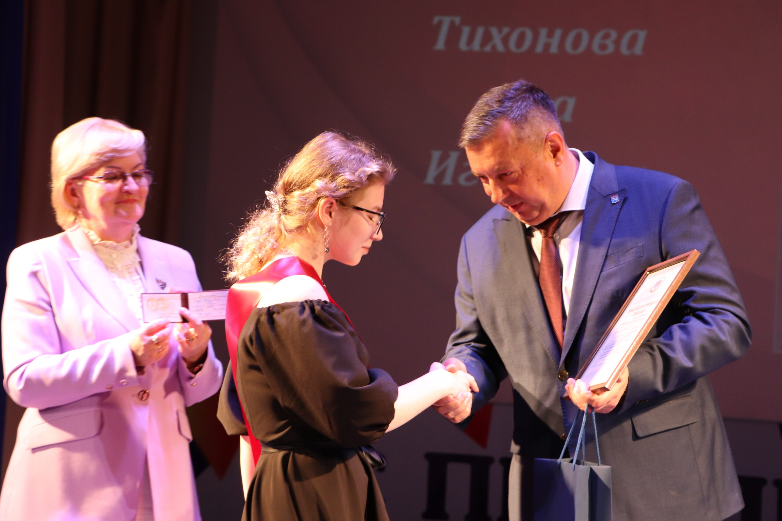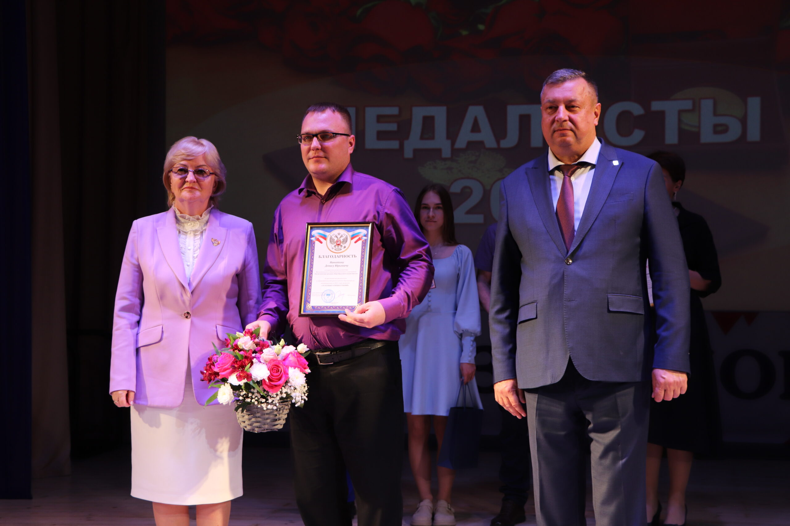 Александр Николаевич совместно с Ириной Кравченко, возглавляющей комитет образования районной администрации, вручили заслуженные награды медалистам, а также благодарственные письма их родителям, педагогам и директорам школ.