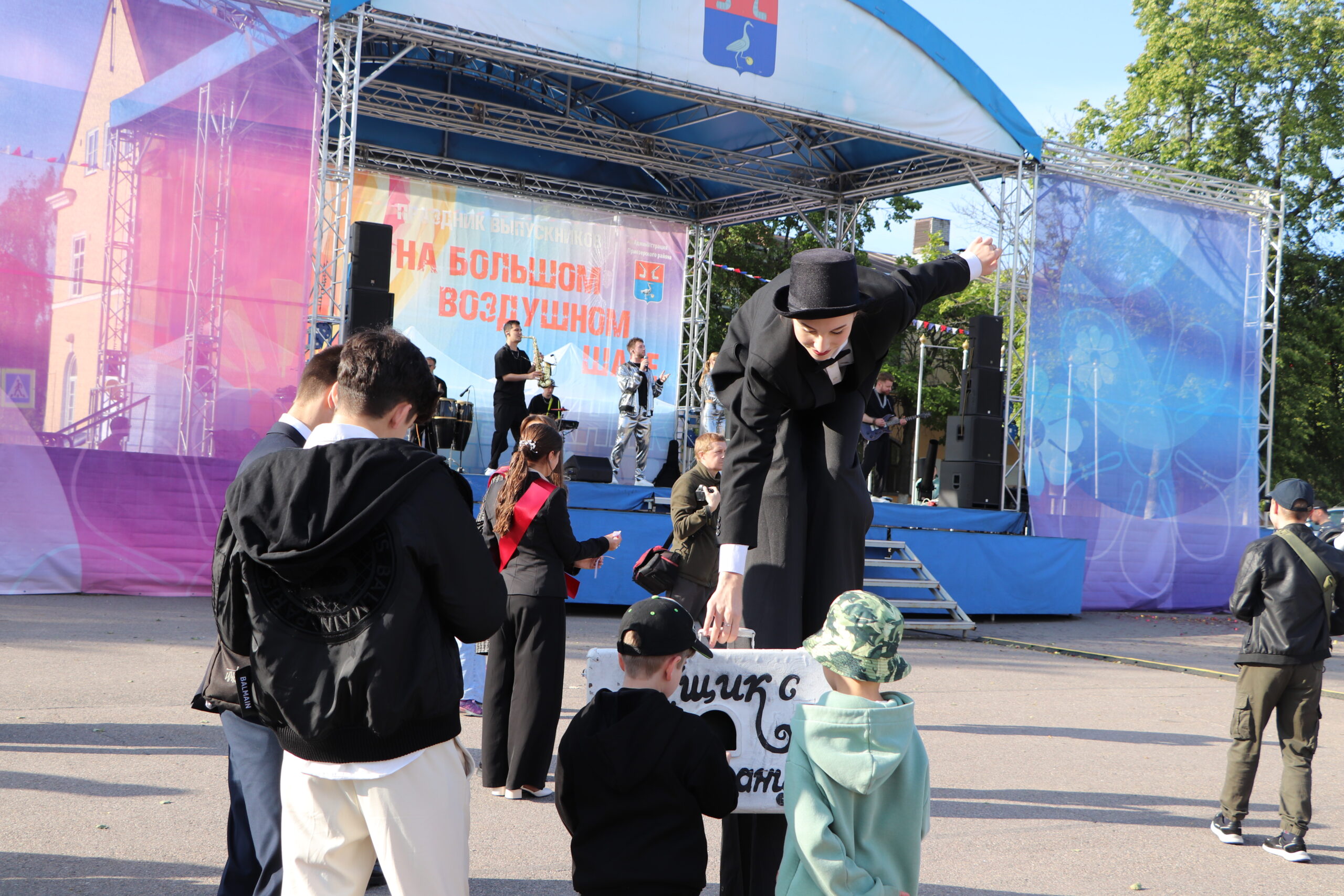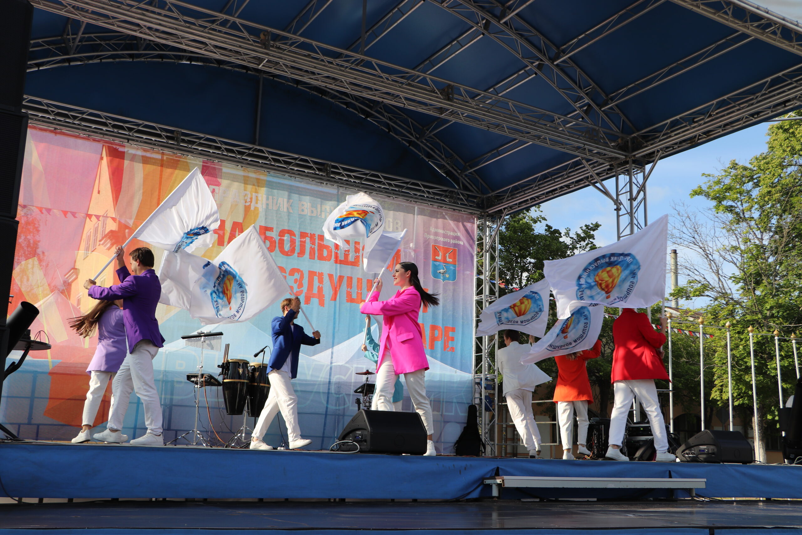 Торжество под названием «На большом воздушном шаре» продолжилось на главной площади города, где творческие коллективы из Санкт-Петербурга и Приозерска подарили море эмоций.