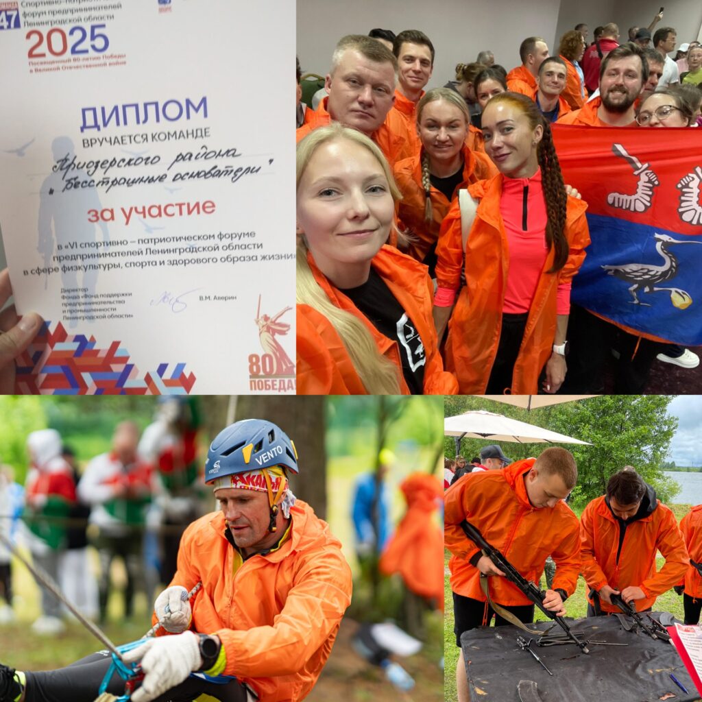 Параллельно с вебинаром, 24 июня, в Токсово, на базе «Учебно-тренировочного центра «Кавголово», проходил спортивно-патриотический Форум для предпринимателей и самозанятых. Сотрудники Фонда с делегацией предпринимателей Призерского района соревновались в мастерстве, силе и ловкости с другими командами Ленинградской области. Наш район достойно выступил, несмотря на капризы природы, заняв уверенное 5-е место среди 20 команд-участников.