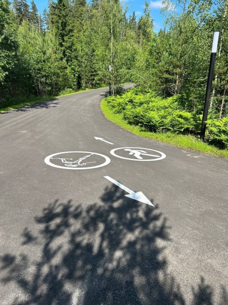 На лыжероллерной трассе «тропа Ярви» нанесена разметка для пеших туристов и роллеров.