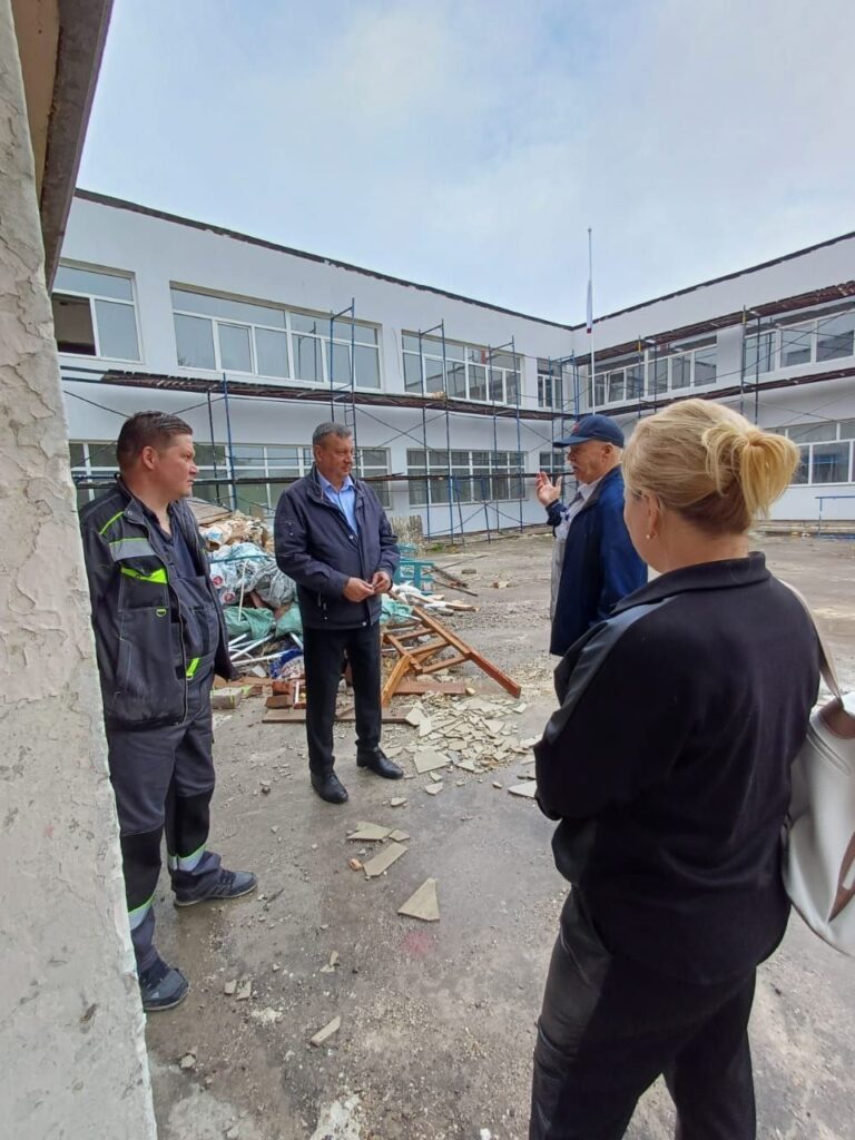 Первая точка – Запорожская школа, где продолжается капитальный ремонт. Фасад готов, идет покраска, в планах – утепление кровли. К сожалению, темпы работ подрядчика пока не соответствуют ожиданиям – этот вопрос взят на контроль.