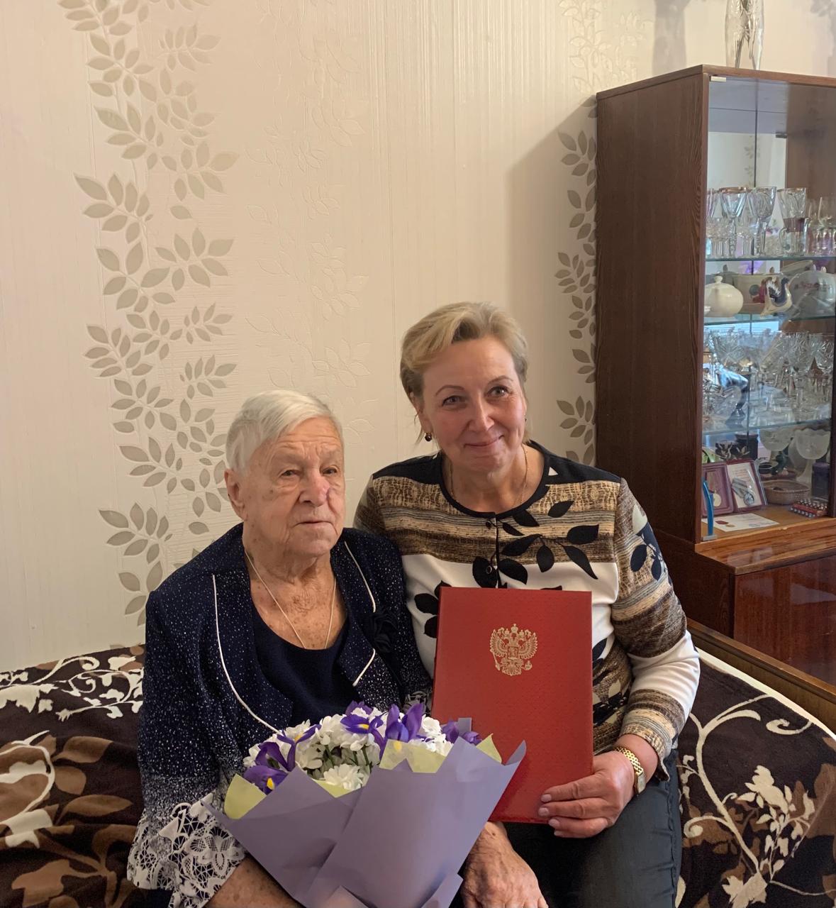 «90 лет — почетный возраст, в котором заключен огромный жизненный опыт, кладезь знаний и мудрости. Вся Ваша жизнь прочно связана с судьбой нашей Родины. Спасибо Вам за то, что вы сделали в этой жизни. Не просто работали, а дали возможность всем нам жить, трудиться, растить детей. Примите самые добрые пожелания здоровья, благополучия, долголетия и мира», — говорится в поздравительном адресе от депутата Светланы Потаповой, который она вместе с цветами и подарком вручила Валентине Владимировне Киселёвой в юбилейный для нее 90-й День рождения .