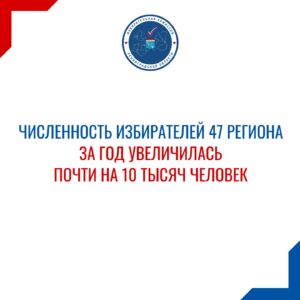 За один год (с 1 июля 2024 года) число избирателей 47 региона увеличилось на 9627 человек (на 0,7%). При этом, например, за 10 лет (с 1 июля 2015 года) численность избирателей 47 региона выросла более чем на 121 тысячу человек.