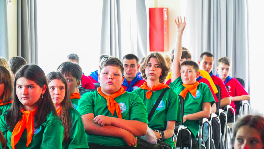 Анастасия Спищева, старший вожатый лагеря «Премьера», говорит, что сейчас здесь проходит тематическая смена «Я родом из детства». Каждый день в лагере начинаются с подъёма, утренней зарядки и линейки, на которой поднимается флаг России. Патриотическое воспитание стало важной частью отдыха в «Премьере».