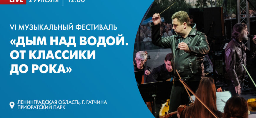 26 июля состоится музыкальный фестиваль «Дым над водой. От классики до рока» (Ленинградская область,  Гатчина, Приоратский парк, озеро Филькино).