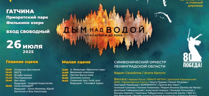 В выходные Гатчина – столица Ленобласти – наполнится звуками музыки. В субботу там пройдет один из главных региональных фестивалей «Дым над водой. От классики до рока». Уже в восьмой раз музыканты и композиторы России и зарубежья соберутся вместе, чтобы наполнить Ленобласть звуками классических, джазовых и рок-композиций.