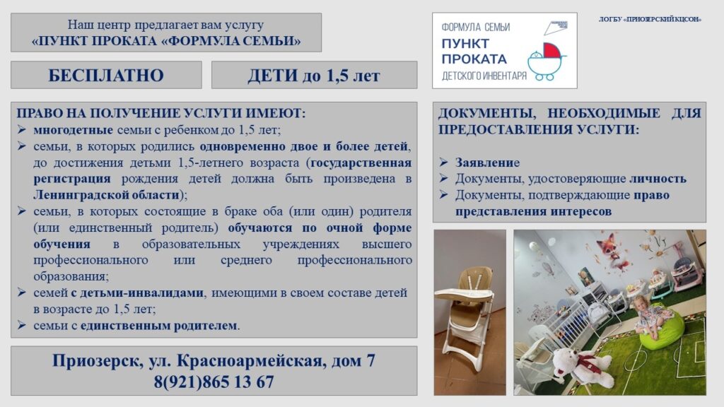 Помимо социального обслуживания на дому, также теперь для семей установленных льготных категорий центр предоставляет услуги #Социальная_няня» и #Пункт_проката#Формула_семьи.