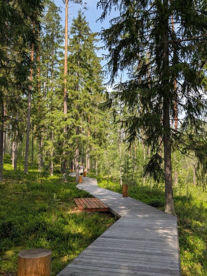 Тропа Ярви — 18 километров лесной магии сквозь сосновые боры и берега кристальных озёр. Вдоль маршрута — панорамные площадки, старинные ели, чистейший воздух и древний ледниковый каньон в финале.