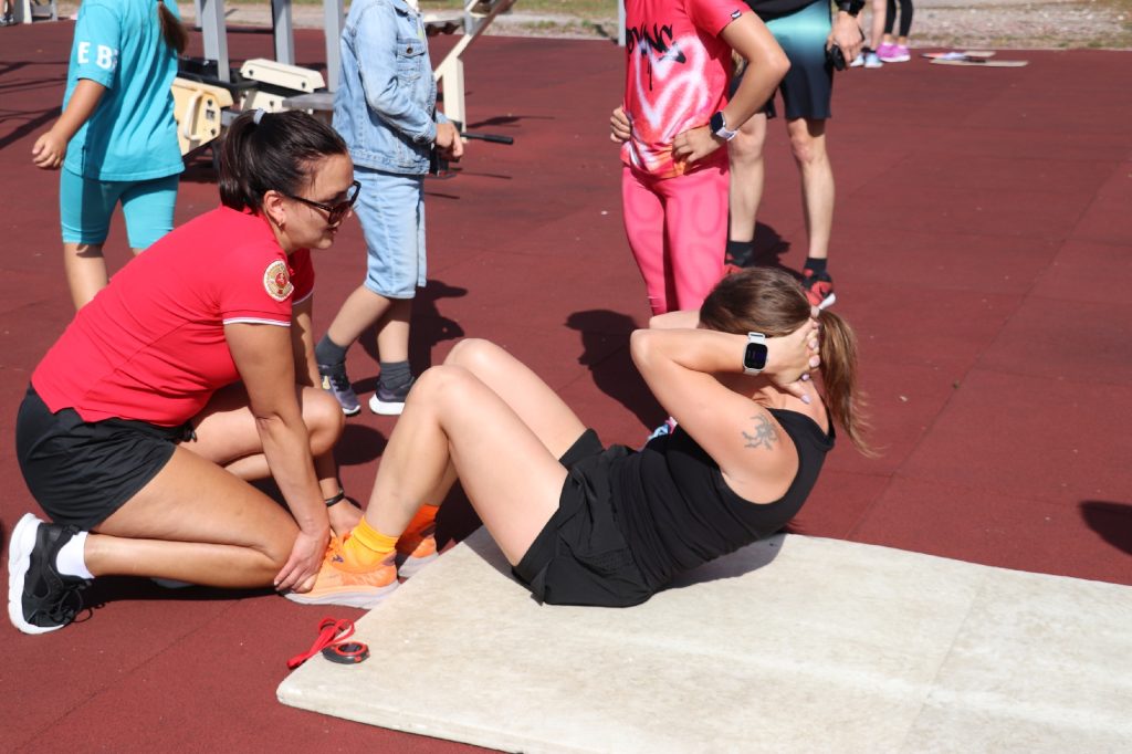 Беговая дорожка стадиона в этот день превратилась в арену для эстафетного испытания, включавшего элементы программы ГТО – комплекса, направленного на всестороннее физическое развитие. На специально оборудованной игровой зоне развернулась программа «Испытай себя», в которую вошли шесть мини-площадок. Участники соревновались в меткости, метая дротики в дартс, демонстрируя точность бросков в корн-холл, метко бросая тарелки в сквиджбол. Смелость и баланс проверялись в ходьбе на ходулях, выносливость – в прыжках на скакалке, а сила – в рывке гири.