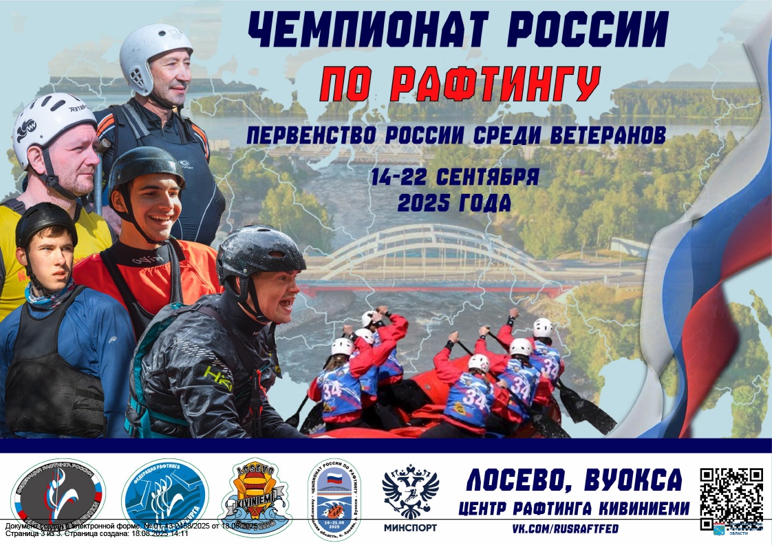 С 14 по 22 сентября в посёлке при ж/д станции Лосево Приозерского района Ленинградской области на реке Вуокса запланировано проведение Чемпионата России и Первенства среди ветеранов по рафтингу 2025.