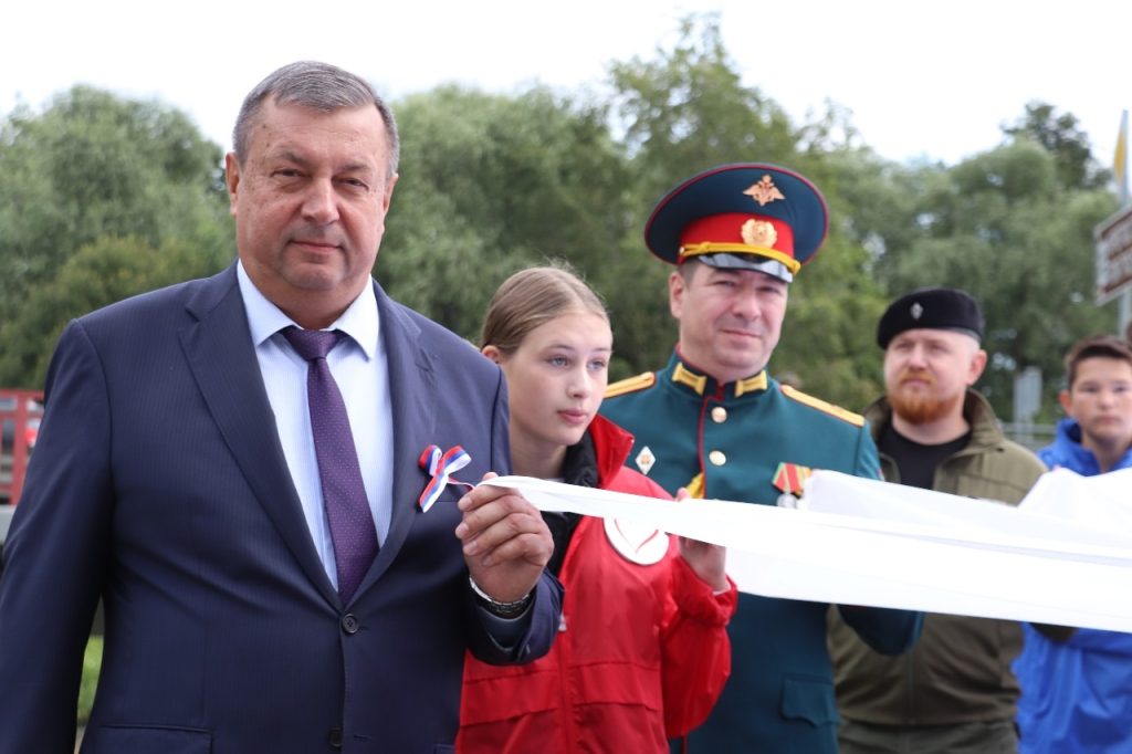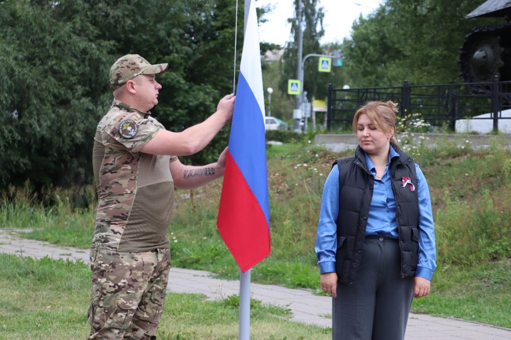 Представители власти, депутаты, участники СВО и молодежь приняли участие в церемонии выноса флага. Честь поднять флаг была предоставлена ветерану СВО Сергею Карпуку и его супруге Елизавете.