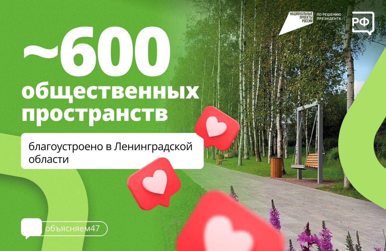 Около 600 новых общественных пространств создано в Ленобласти в рамках нацпроекта «Инфраструктура для жизни».
