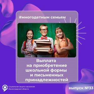 Один раз в календарный год многодетная семья может обратиться за денежной выплатой на приобретение комплекта детской (подростковой) одежды для посещения школьных занятий и школьных письменных принадлежностей
