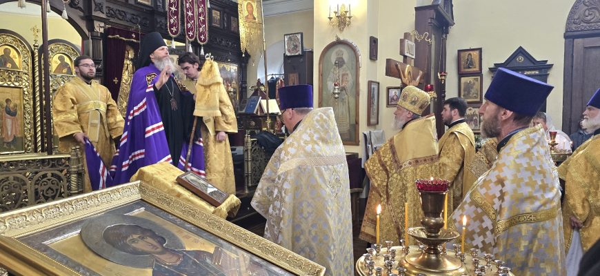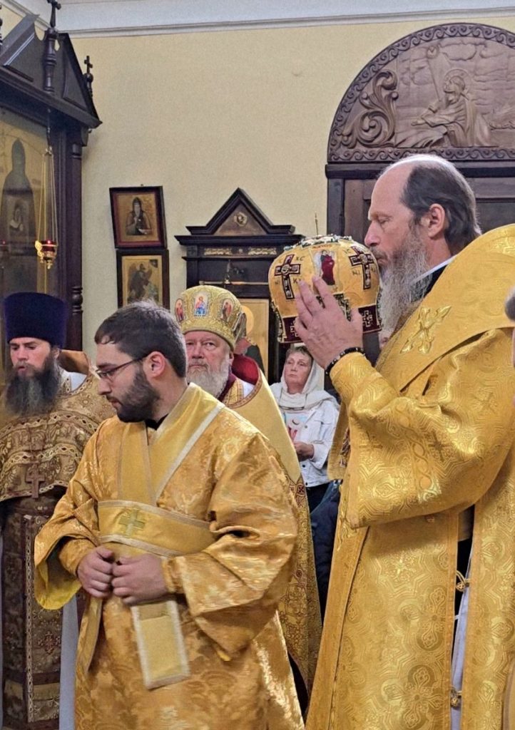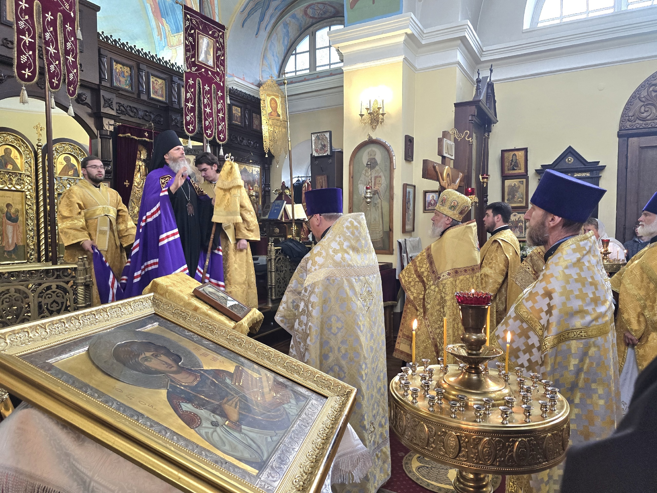 После богослужения владыка обратился к верующим с архипастырским словом. Затем от собора до строящегося духовно-просветительского центра святителя Тихона Задонского духовенство и прихожане прошли крестным ходом. В домовом храме центра архиерей совершил молебен у мощей святого.