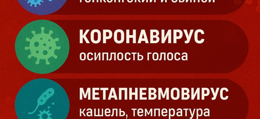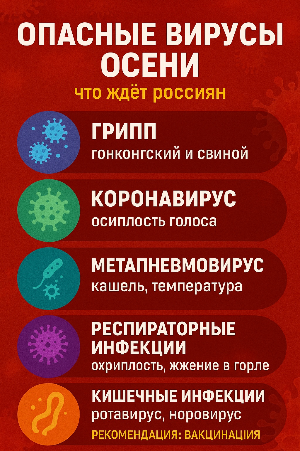 Его особенность — на 1–2-й день болезни резко садится голос, появляется охриплость.Остальные симптомы — стандартные: температура, слабость, насморк. Но врачи подчёркивают: ковид продолжает ходить циклами каждые 4–6 месяцев, и пик осенней заболеваемости вполне может совпасть с эпидемией гриппа.🫁 Метапневмовирус и компания