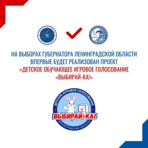 На выборах Губернатора Ленинградской области впервые будет реализован проект «Детское обучающее игровое голосование «Выбирай-Ка!»
