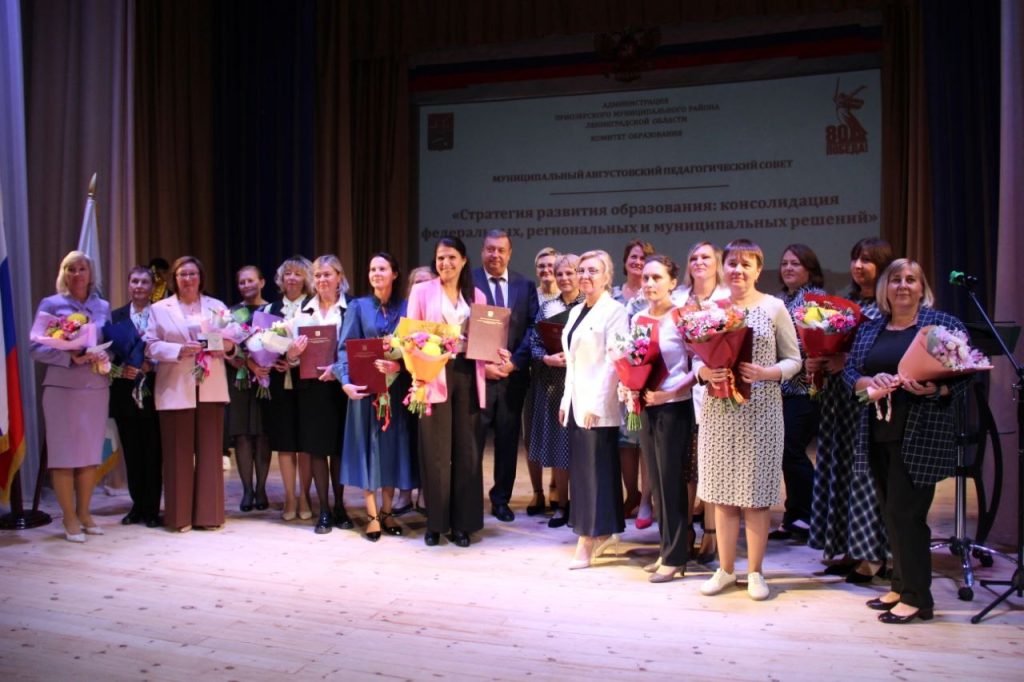 На торжественной части педагогического совета чествовали педагогов, которые внесли значительный вклад в развитие системы образования Приозерского района. Поздравляли не только работников образования, которые много лет трудятся в образовательных учреждениях нашего района, но и молодых специалистов, чья педагогическая деятельность стартует с 1 сентября 2025 года. В новом учебном году свою профессиональную деятельность в школах Приозерского района начнут 12 молодых специалистов.