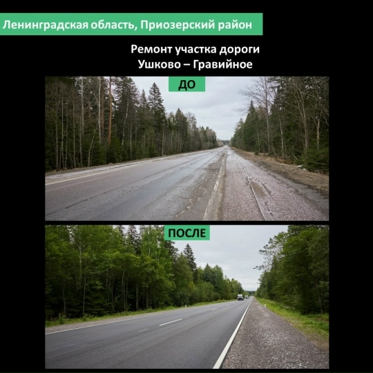 Дорожники отремонтировали участок трассы Ушково – Гравийное между населенными пунктами Сосново и Запорожское в Приозерском районе. Первый этап работ был завершен в прошлом году, в этом – завершили обновление на 11 километрах. Работы велись в рамках нацпроекта «Инфраструктура для жизни».