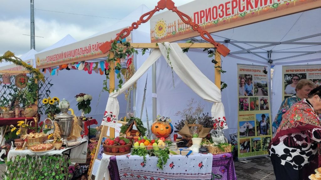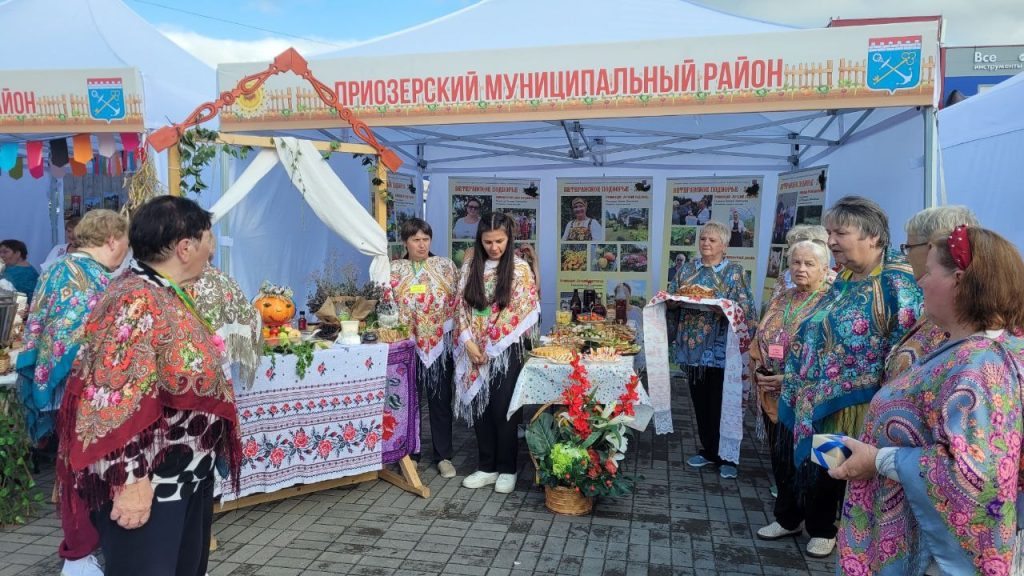Много гостей пришло полюбоваться яркой, красочной экспозицией Приозерского района, по достоинству гостеприимство приозерцев оценили почетные гости, встречали которых традиционно хлебом –солью. Подхватили гости и неизменную речовку приозерцев — «Если есть на свете рай – это Приозерский край»!