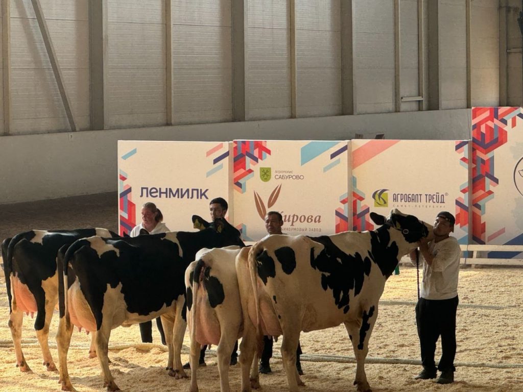 «У нас выводчик их тренирует до выставки. Мы их готовим, тренируем, усмиряем, можно так сказать, характер их придерживаем. К каждому нужен индивидуальный подход найти,» — поделилась Марина Белых, главный зоотехник-селекционер АО ПЗ «Петровский».Судьи оценивали гармоничность, продуктивность и качество молока. Ленобласть занимает