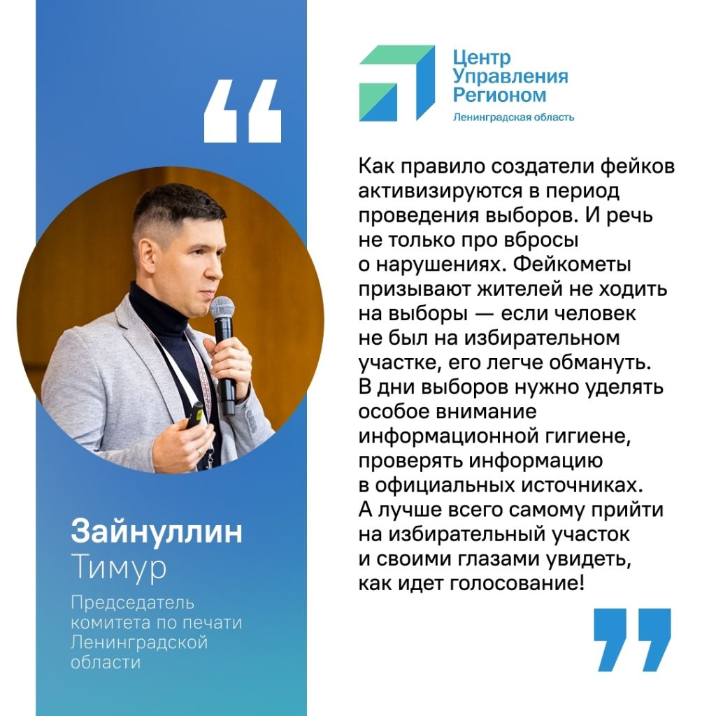 В дни проведения ЕДГ 12-14 сентября 2025 года прогнозируется распространение фейков, сгенерированных искусственным интеллектом, но это далеко не единственная угроза в период выборов. Как отметил председатель комитета по печати Ленинградской области, в дни выборов нужно уделять особое внимание информационной гигиене и проверять информацию в официальных источниках.
