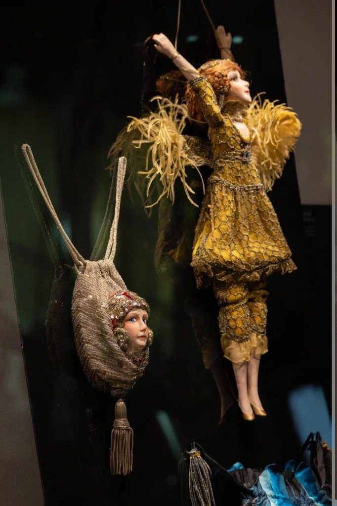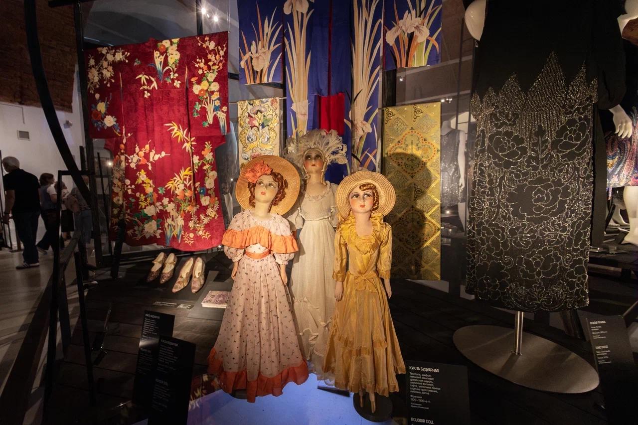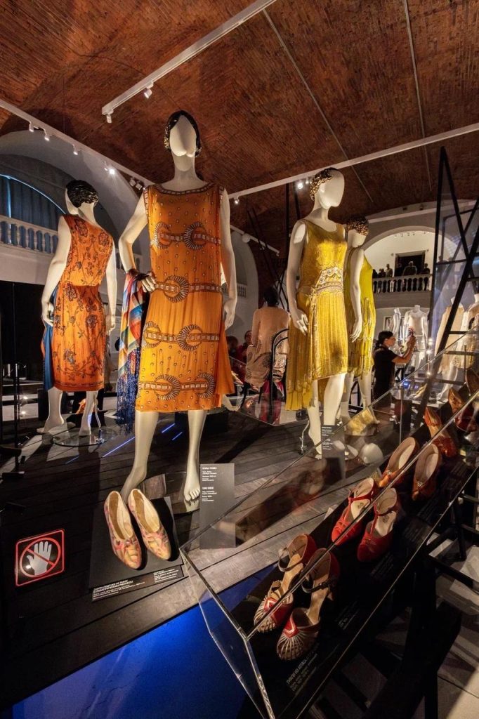 Многие уникальные экспонаты предоставил для выставки коллекционер и исследователь Назим Мустафаев, основатель виртуального музея обуви Shoe Icons. В лучах света переливаются блестками, шелком, бархатом платья модельеров Поля Пуаре, Жанны Ланвен, Мариано Фортуни, Эдварда Молине, Люсьена Лелонга. Работы обувных мастеров, в том числе уникальная коллекция декоративных целлулоидных каблуков, сверкают в витринах как драгоценности. Дамские сумочки в эпоху ар-деко тоже превратились в объекты дизайнерского искусства — расшитые бисером изящные ридикюли соседствуют на выставке с сумками в виде кукол и необычными геометричными конструкциями.