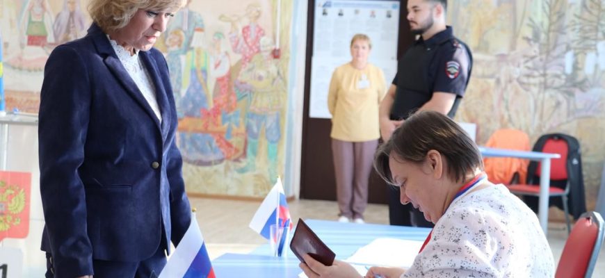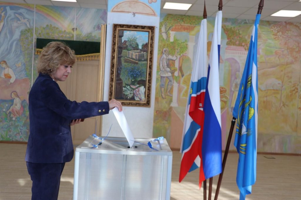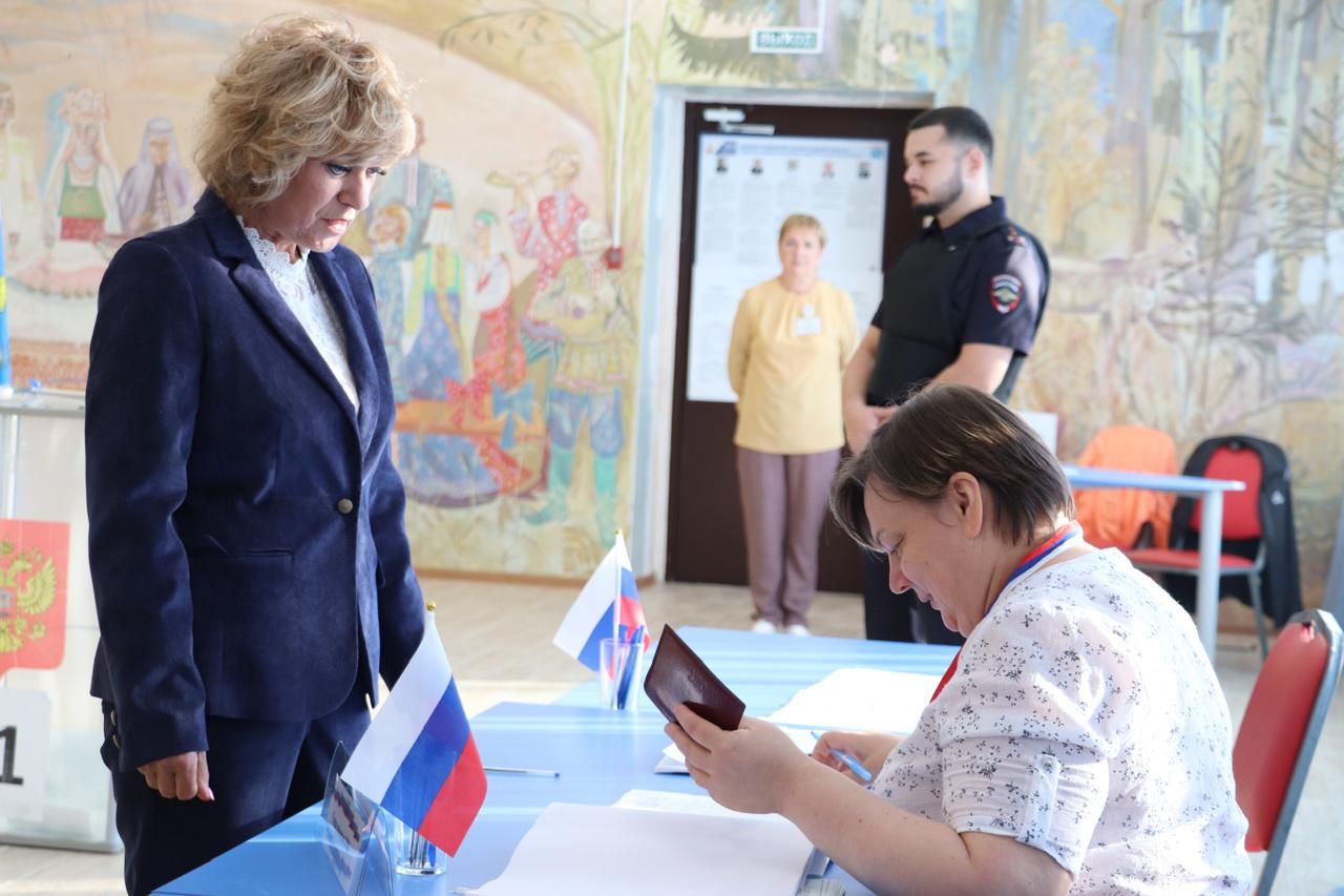 На этом избирательном участке приняла участие в голосовании — Глава района Ирина Пьянкова .