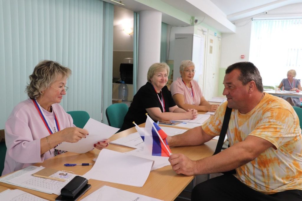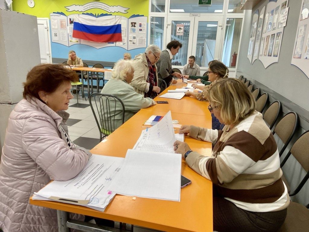 На избирательных участках создана комфортная обстановка: волонтеры активно помогают пожилым гражданам, включая помощь в преодолении лестничных пролётов и открытии дверей.