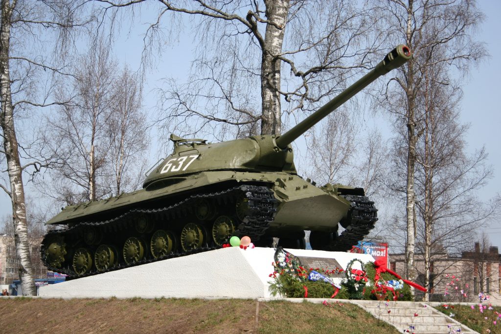 На полигоне Кировского завода в Ленинграде членами поисковой военно-патриотической группы «Ладога» была найдена испытательная модель тяжелого танка ИС-3 («Иосиф Сталин — 3»). Танк, весь изрешеченный боевыми снарядами, был доставлен в танкоремонтный батальон в Пушкине. Его обменяли на такой же, но более целый. 14 сентября 1990 года танк занял свое место у моста через узкий рукав Вуоксы.